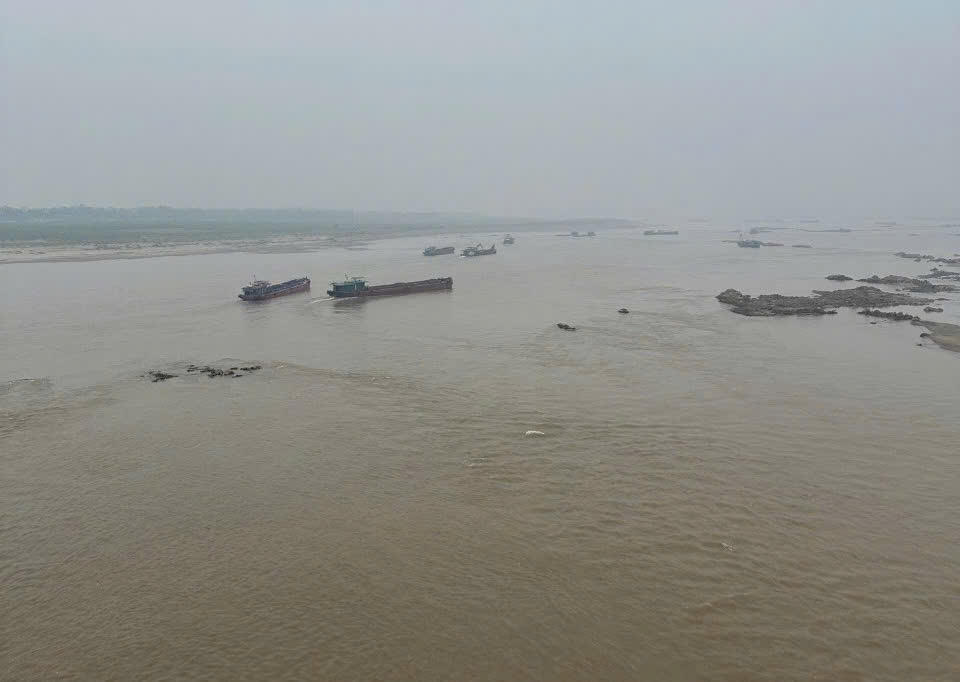 Khai thác, vận chuyển cát sỏi trên sông Hồng đoạn chảy qua tỉnh Phú Thọ. Ảnh: Tùng Duy