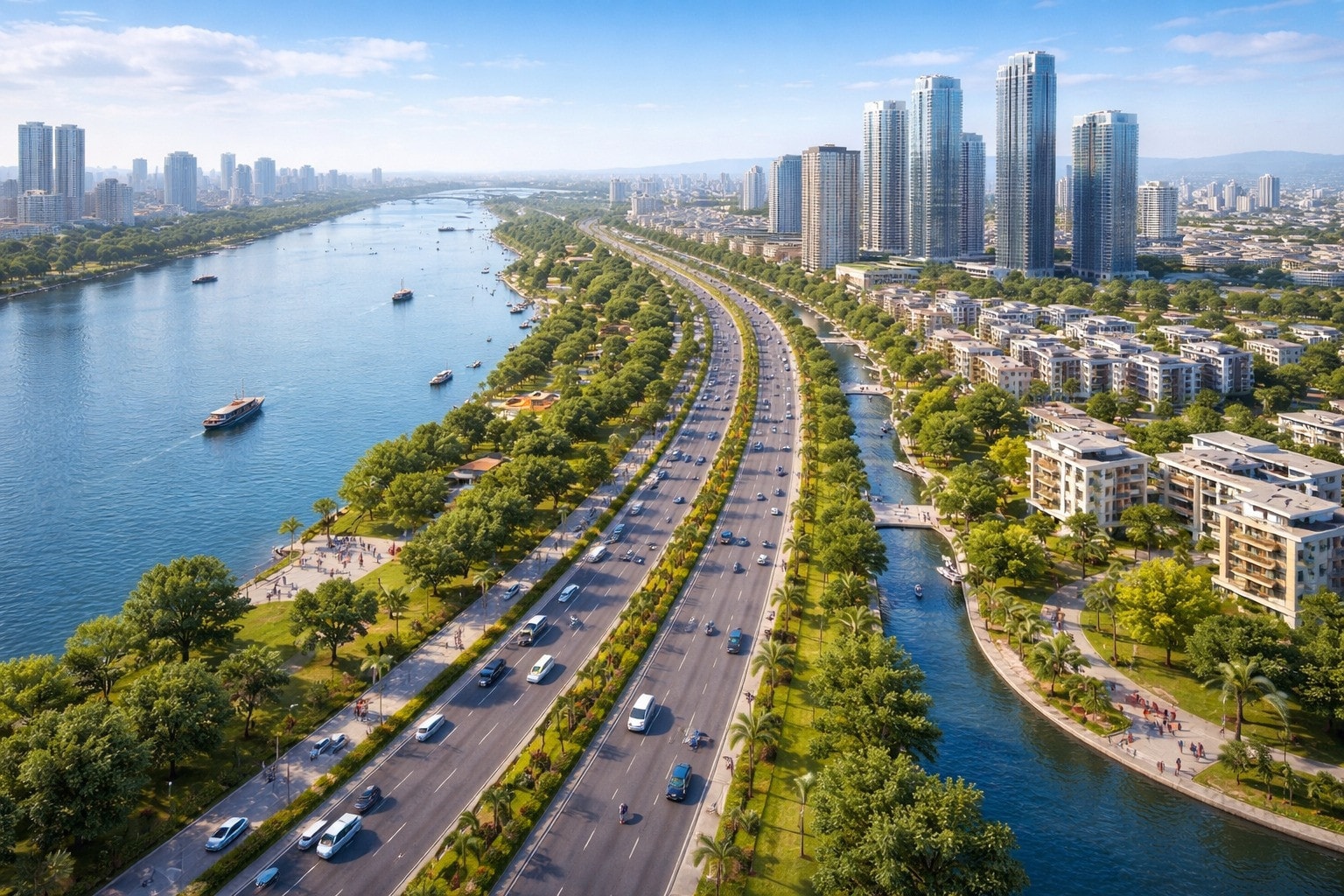 Trục đại lộ cảnh quan sông Hồng, nếu được hình thành, sẽ đóng vai trò như "xương sống" kết nối các không gian chức năng này của tỉnh. Ảnh minh họa