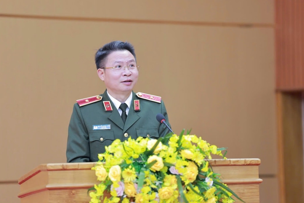 Thiếu tướng Nguyễn Minh Tuấn - Giám đốc Công an tỉnh nhấn mạnh về đảm bảo an ninh trật tự tại địa phương, tạo môi trường lành mạnh thu hút đầu tư, thúc đẩy phát triển kinh tế - xã hội
