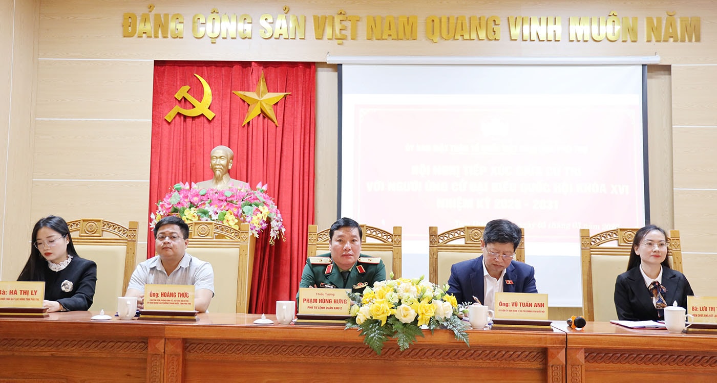 Các ứng cử viên gồm: Nguyễn Hữu Đông - Ủy viên Ban Chấp hành Trung ương Đảng, Chủ nhiệm Ủy ban Công tác đại biểu, Phó Trưởng Ban Tổ chức Trung ương; Thiếu tướng Nguyễn Minh Tuấn - Giám đốc Công an tỉnh; Bùi Thanh Nam - Trưởng phòng Quản lý ngân sách, Sở Tài chính; Vũ Lâm Tường - Chuyên viên Phòng Quản lý đầu tư công khu vực I, Sở Tài chính đã tiếp xúc cử tri tại Đơn vị bầu cử số 2 gồm các phường, xã: Phú Thọ, Phong Châu, Âu Cơ, Phù Ninh, Dân Chủ, Phú Mỹ, Trạm Thản, Bình Phú