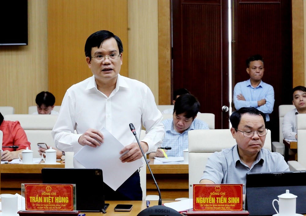 Giám đốc Sở Tư pháp Trần Việt Hùng báo cáo tại hội nghị. Ảnh: Phutho.gov.vn