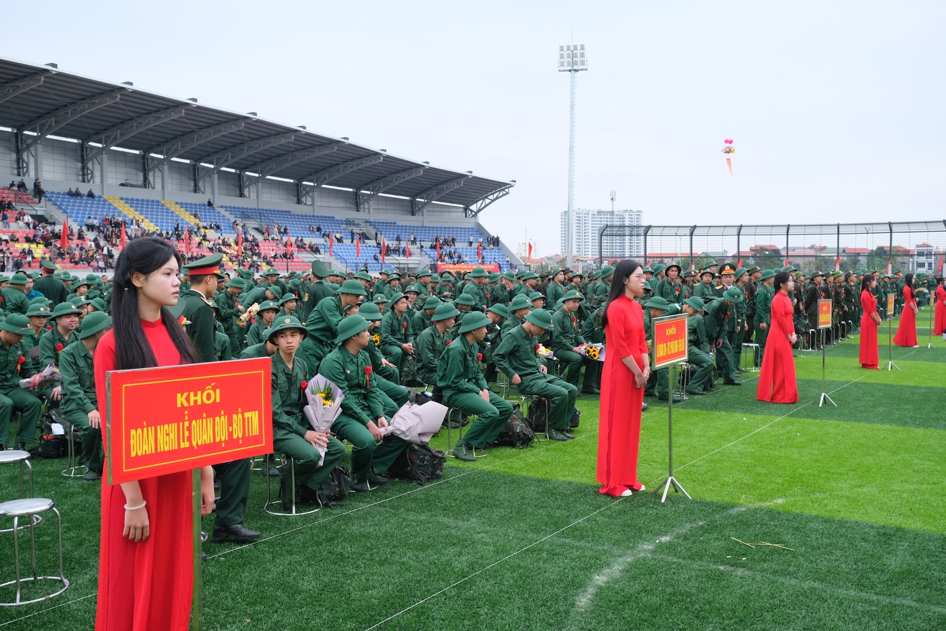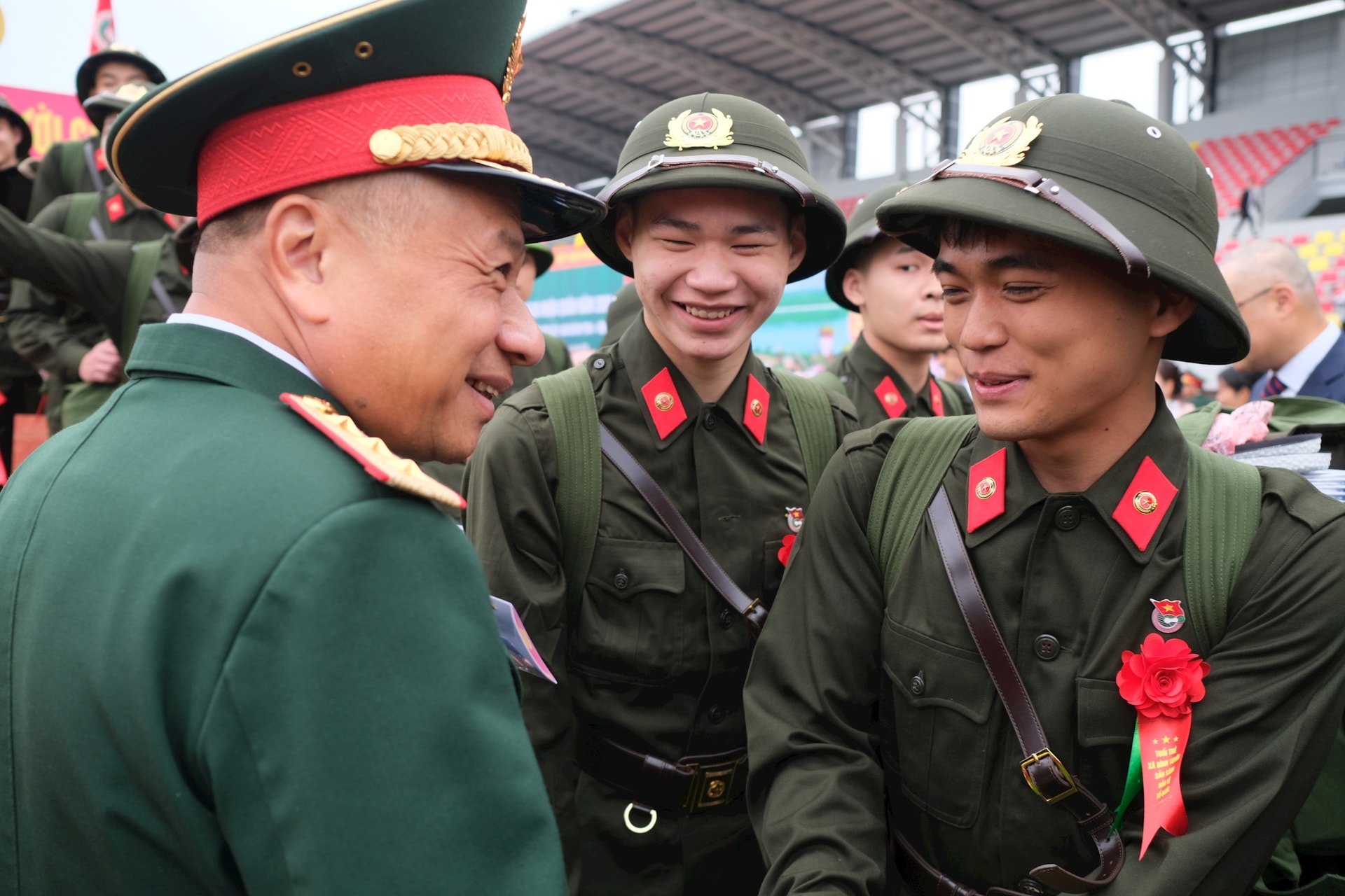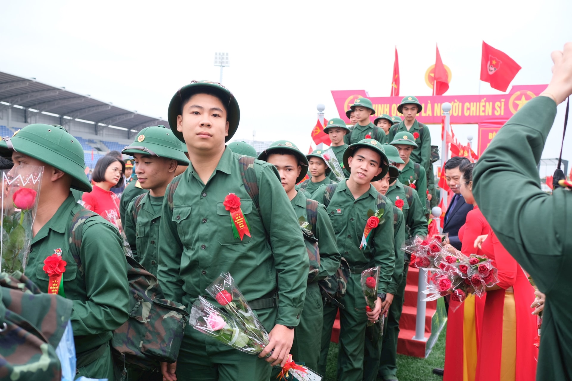 Trong không khí rộn rã, tưng bừng nhưng cũng đầy trang nghiêm và xúc động, các tân binh đồng loạt thể hiện quyết tâm đoàn kết, thương yêu, giúp đỡ lẫn nhau; tích cực học tập, rèn luyện nâng cao trình độ, trở thành những quân nhân tốt, có đủ sức khỏe, đạo đức và năng lực tổng hợp, bảo đảm hoàn thành tốt nhiệm vụ bảo vệ Tổ quốc; xứng đáng với truyền thống vẻ vang của Quân đội và Công an nhân dân.