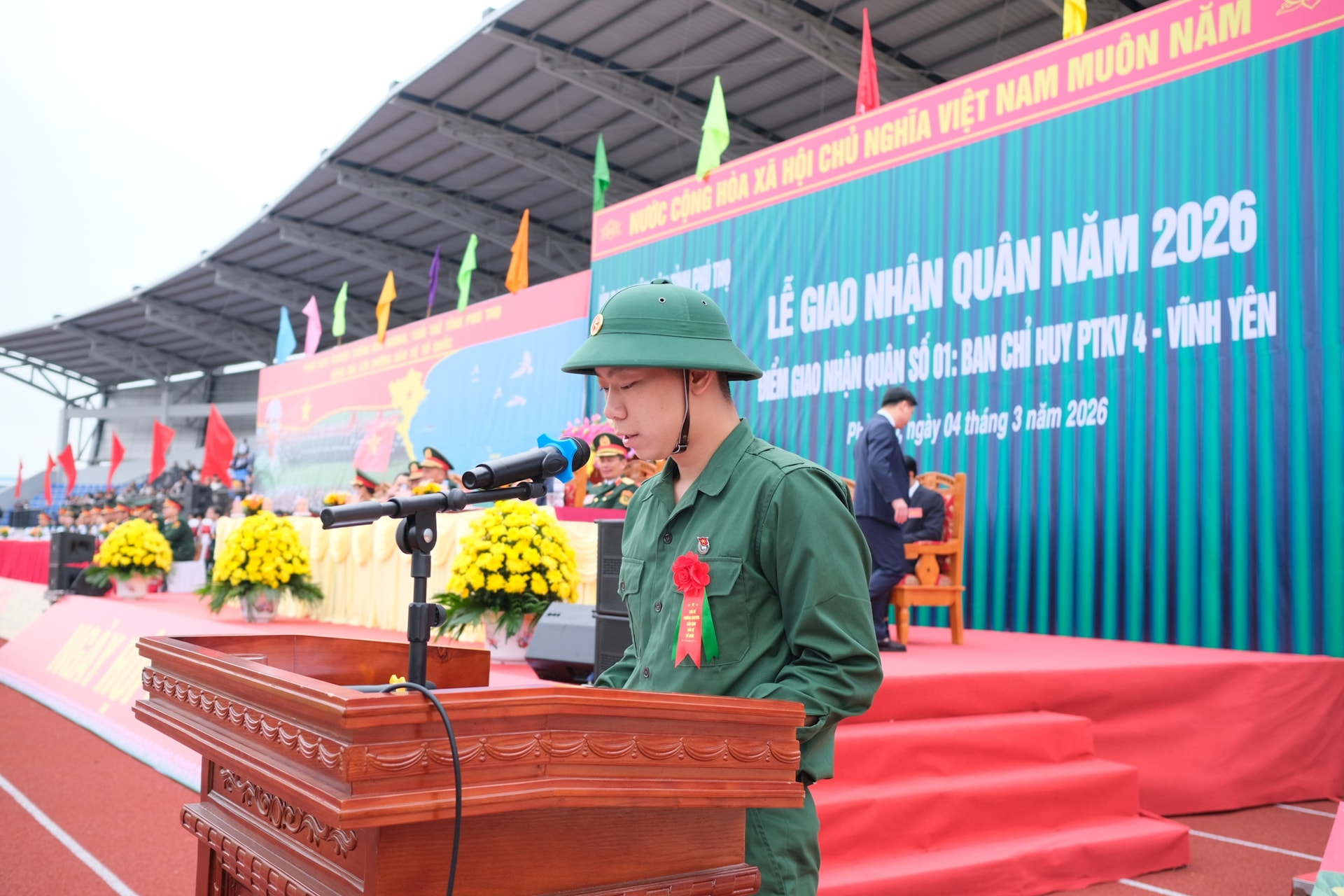 Sáng 4-3, tại Sân vận động phường Vĩnh Phúc, tỉnh Phú Thọ, hàng nghìn người dân đã nô nức tập trung để động viên, cổ vũ và tiễn các thanh niên ưu tú lên đường nhập ngũ, thực hiện nghĩa vụ quân sự và nghĩa vụ Công an nhân dân năm 2026.