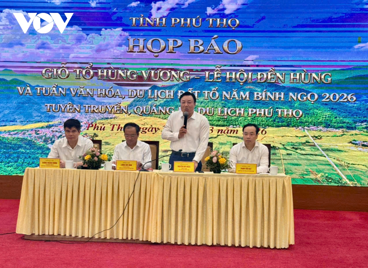 Sáng 27/3, UBND tỉnh Phú Thọ tổ chức họp báo cung cấp thông tin về Giỗ Tổ Hùng Vương - Lễ hội Đền Hùng và Tuần Văn hóa - Du lịch Đất Tổ năm Bính Ngọ 2026.