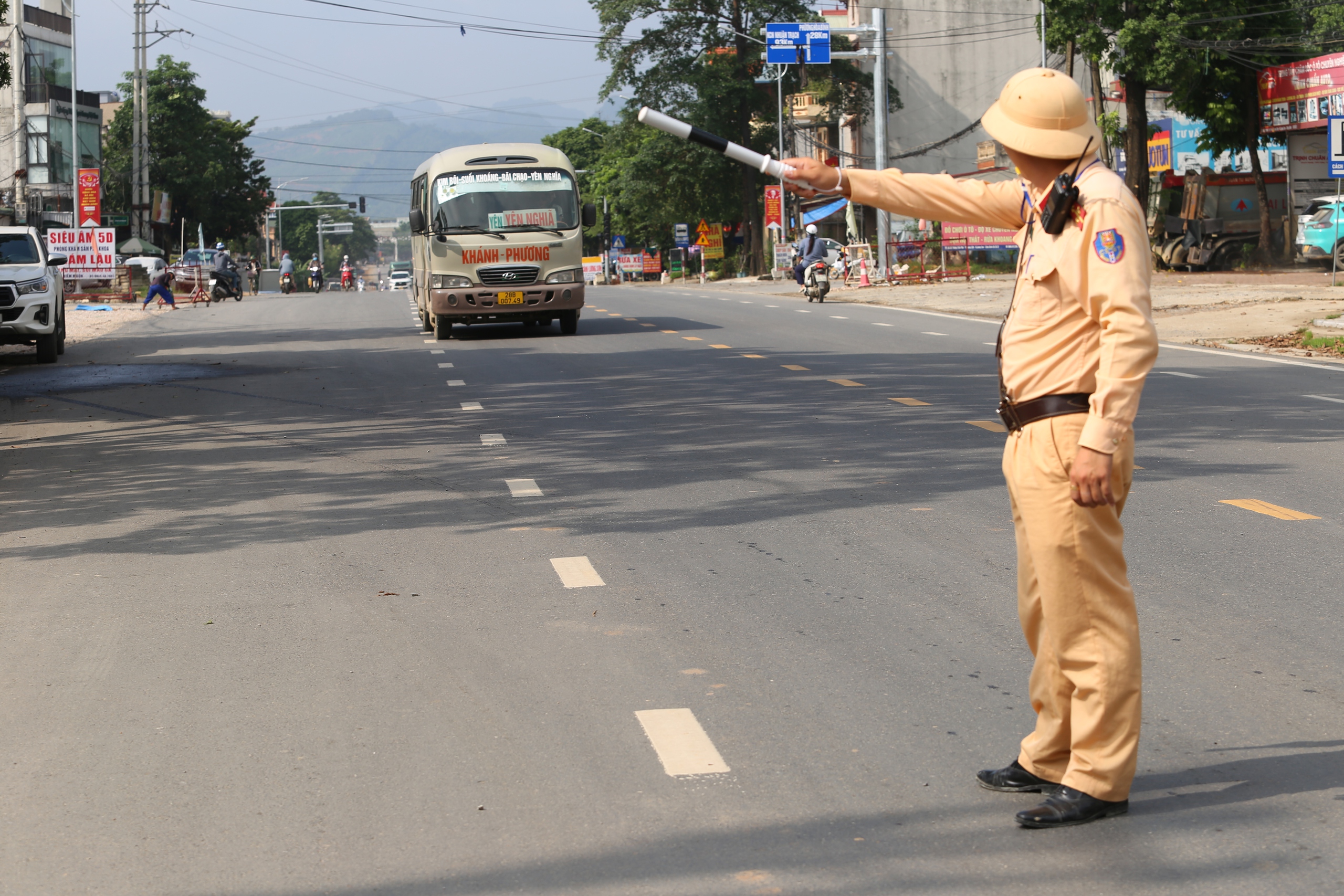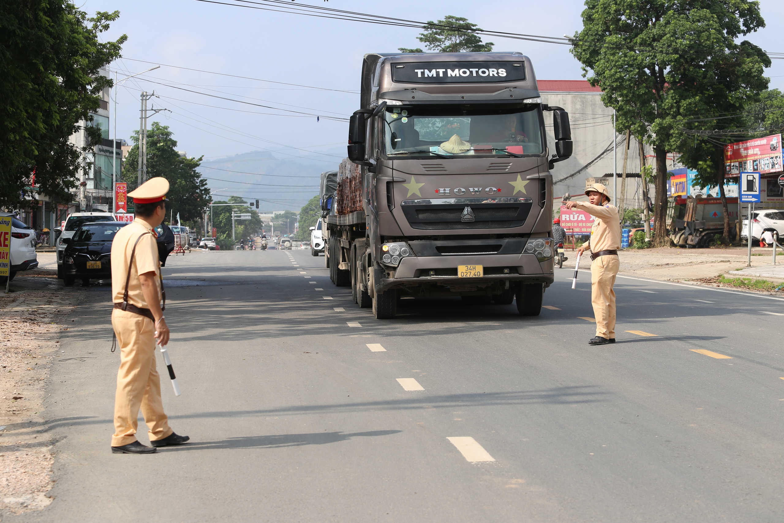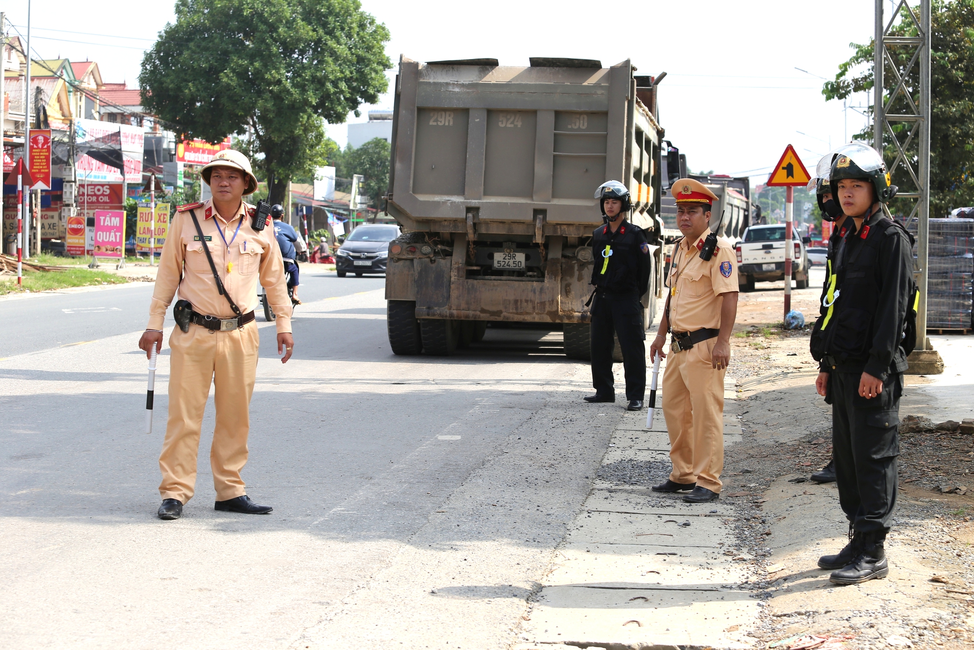 Kiểm soát phương tiện lưu thông trên quốc lộ 6 qua địa bàn xã Lương Sơn, tỉnh Phú Thọ.