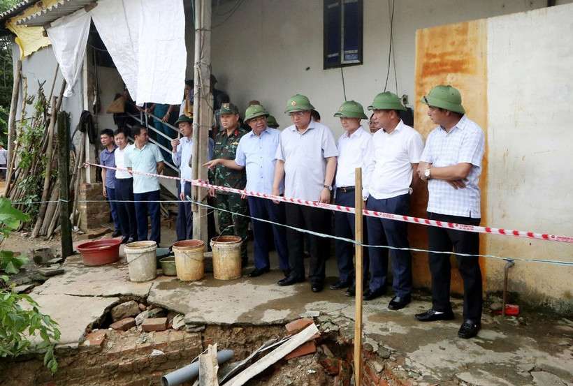 Chủ tịch Ủy ban nhân dân tỉnh Phú Thọ Trần Duy Đông kiểm tra thiệt hại do cơn bão số 10 gây ra tại một số địa phương trong tỉnh.