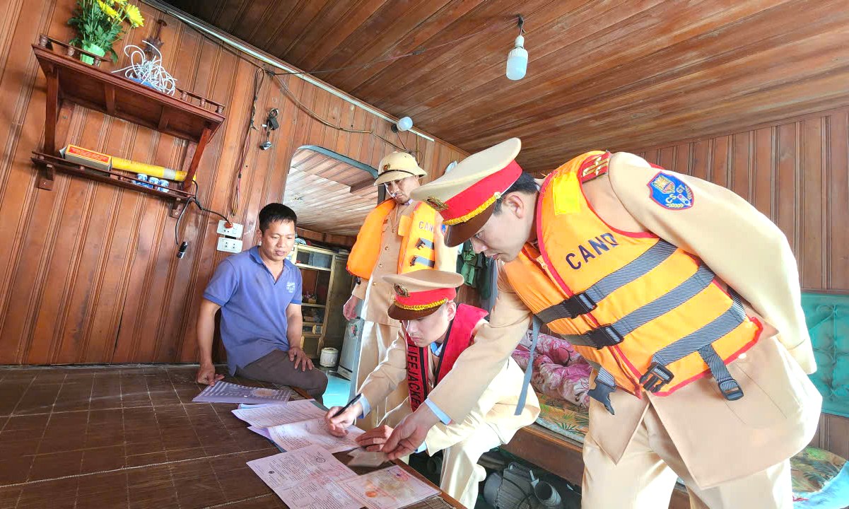 Bên cạnh đó, công tác kiểm tra giấy tờ thuyền viên cũng được thực hiện kỹ lưỡng. Theo đó lực lượng Cảnh sát giao thông đường thủy đối chiếu thực tế nhằm phát hiện và xử lý các trường hợp sử dụng giấy chứng nhận khả năng chuyên môn và chứng chỉ chuyên môn bị tẩy xóa, sửa chữa hoặc không do cơ quan có thẩm quyền cấp.