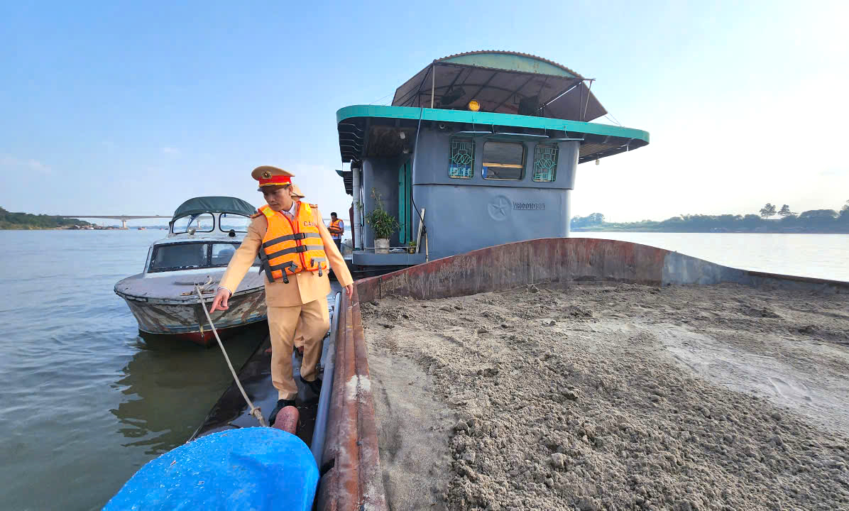 Trong quá trình kiểm tra, Đội Cảnh sát giao thông đường thủy số 2 đã dừng và xử phạt tàu PT-VP 1872 do ông Đỗ Văn Phú (xã Nguyệt Đức) điều khiển, với lỗi chở cát vượt quá mớn nước an toàn. Ông Phú thừa nhận vi phạm, chấp hành xử phạt và cam kết không tái phạm.