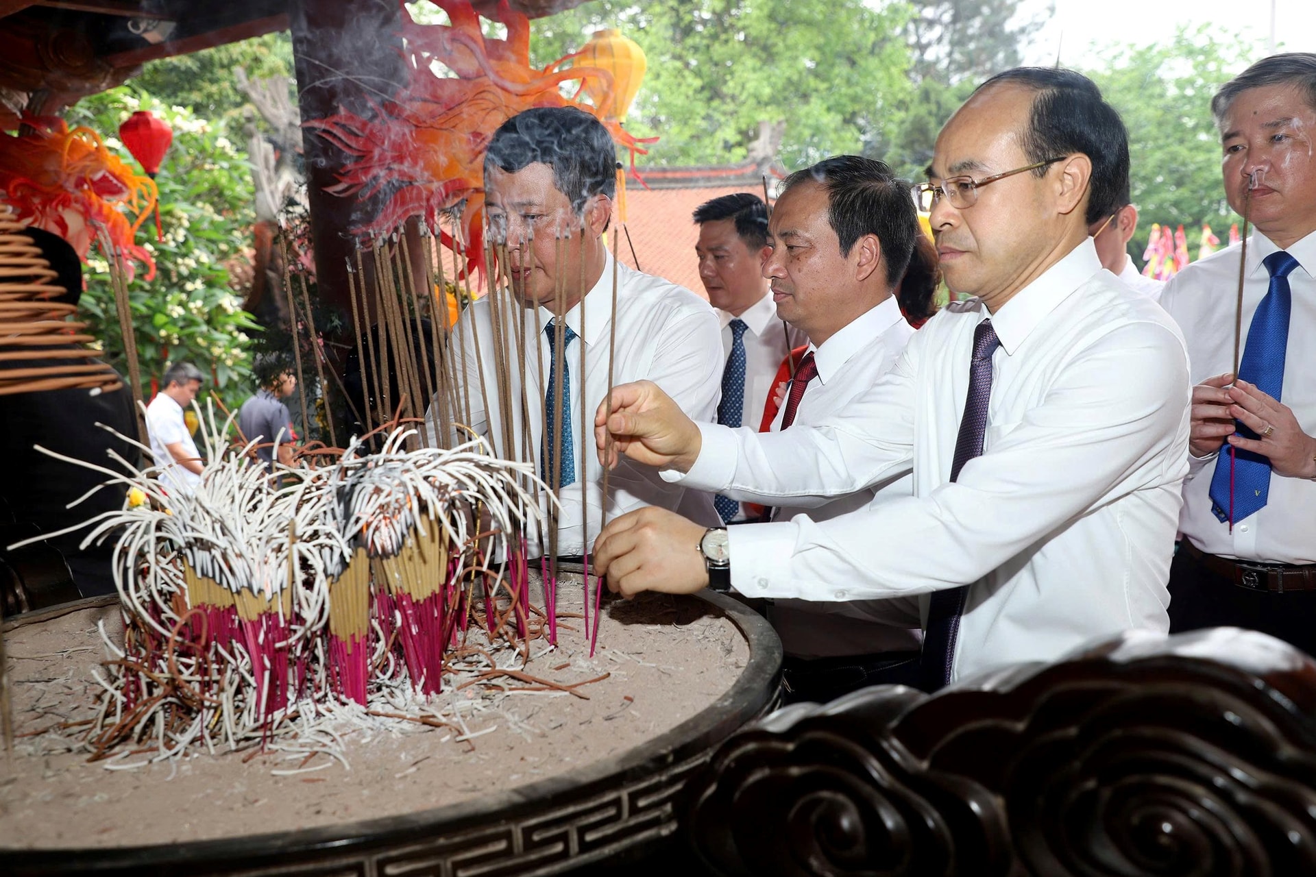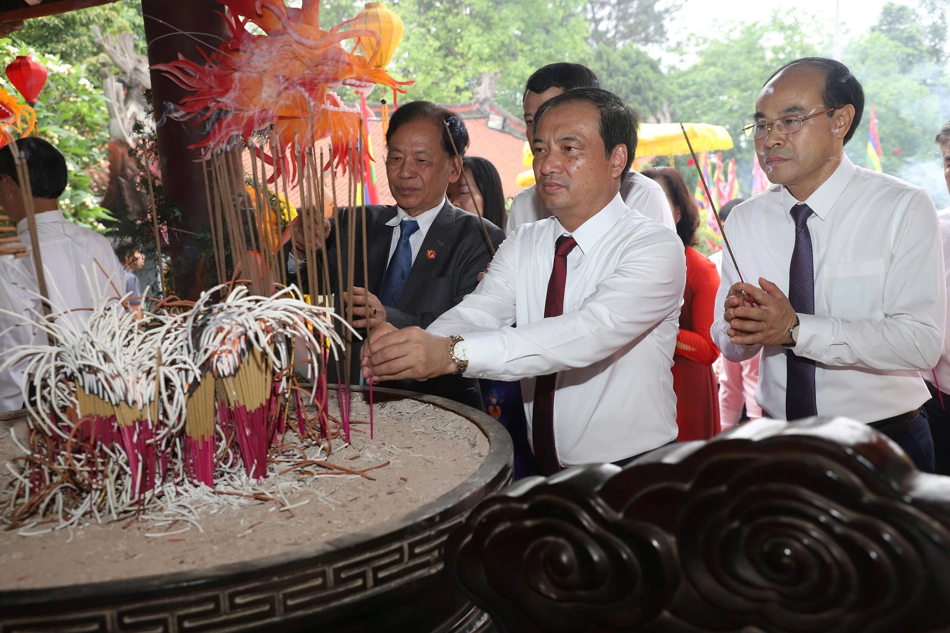 Các đồng chí lãnh đạo tỉnh dâng hưởng Đức Quốc tổ Lạc Long Quân.