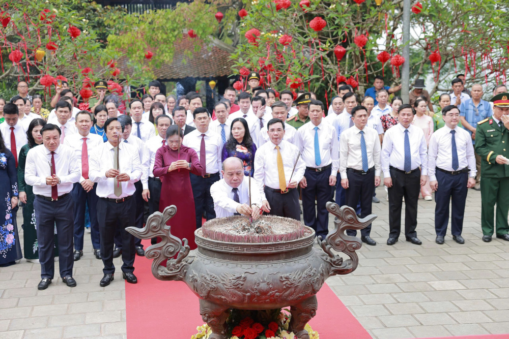Lãnh đạo và Nhân dân tỉnh Phú Thọ làm lễ dâng hương tưởng nhớ Đức Quốc Tổ Lạc Long Quân, biểu tượng thiêng liêng của dân tộc Việt Nam.
