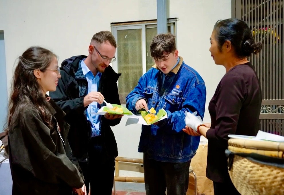 Du khách trải nghiệm xôi Phú Thượng. Ảnh: PV