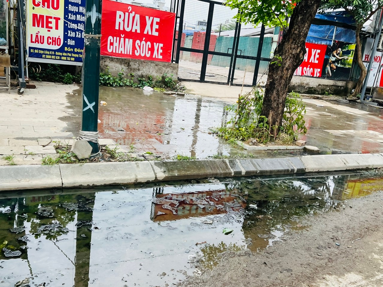 Đáng chú ý, một số điểm rửa xe và quán ăn rửa bát đĩa ngay trên vỉa hè. Nước thải tràn xuống lòng đường, kéo theo rác xuống hệ thống cống, vừa gây mất vệ sinh, vừa tiềm ẩn nguy cơ tắc nghẽn khi mưa lớn. Bên cạnh đó, việc tập kết vật liệu xây dựng và rác thải sai quy định cũng diễn ra phổ biến, làm mất mỹ quan đô thị, cản trở giao thông và gia tăng nguy cơ tai nạn.