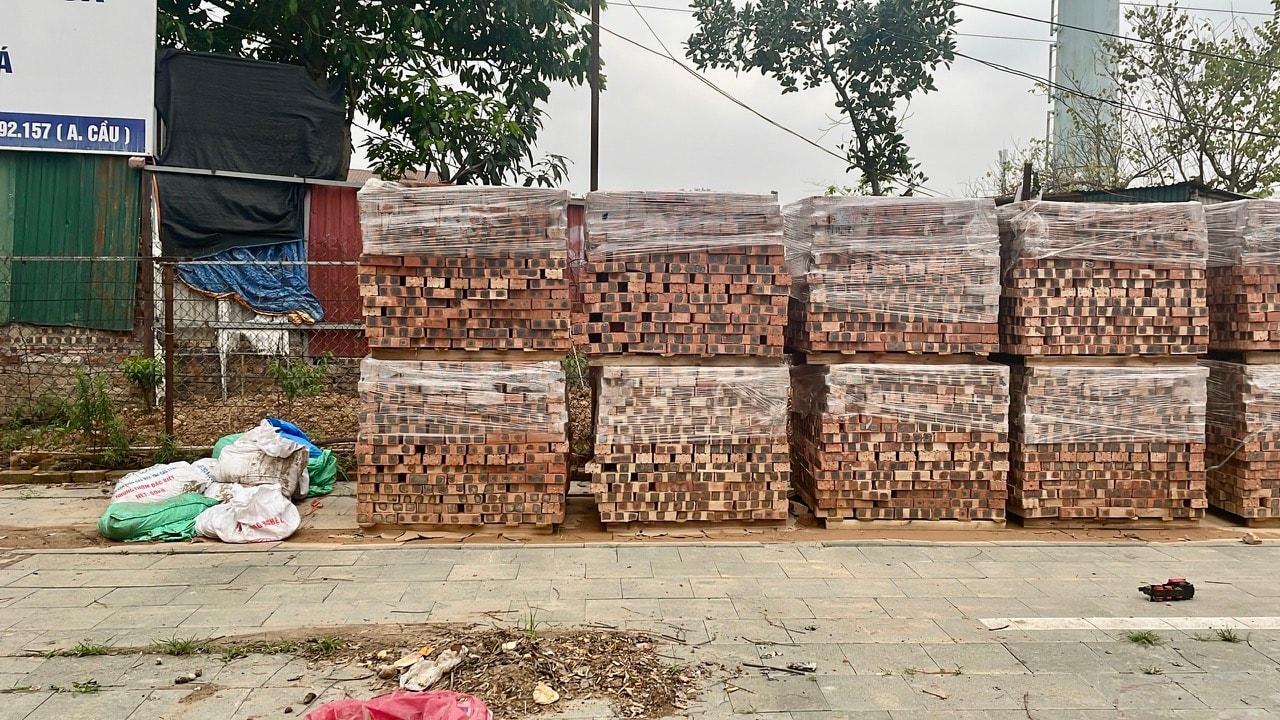 Vỉa hè trở thành nơi tập kết vật liệu xây dựng. Ảnh: PV