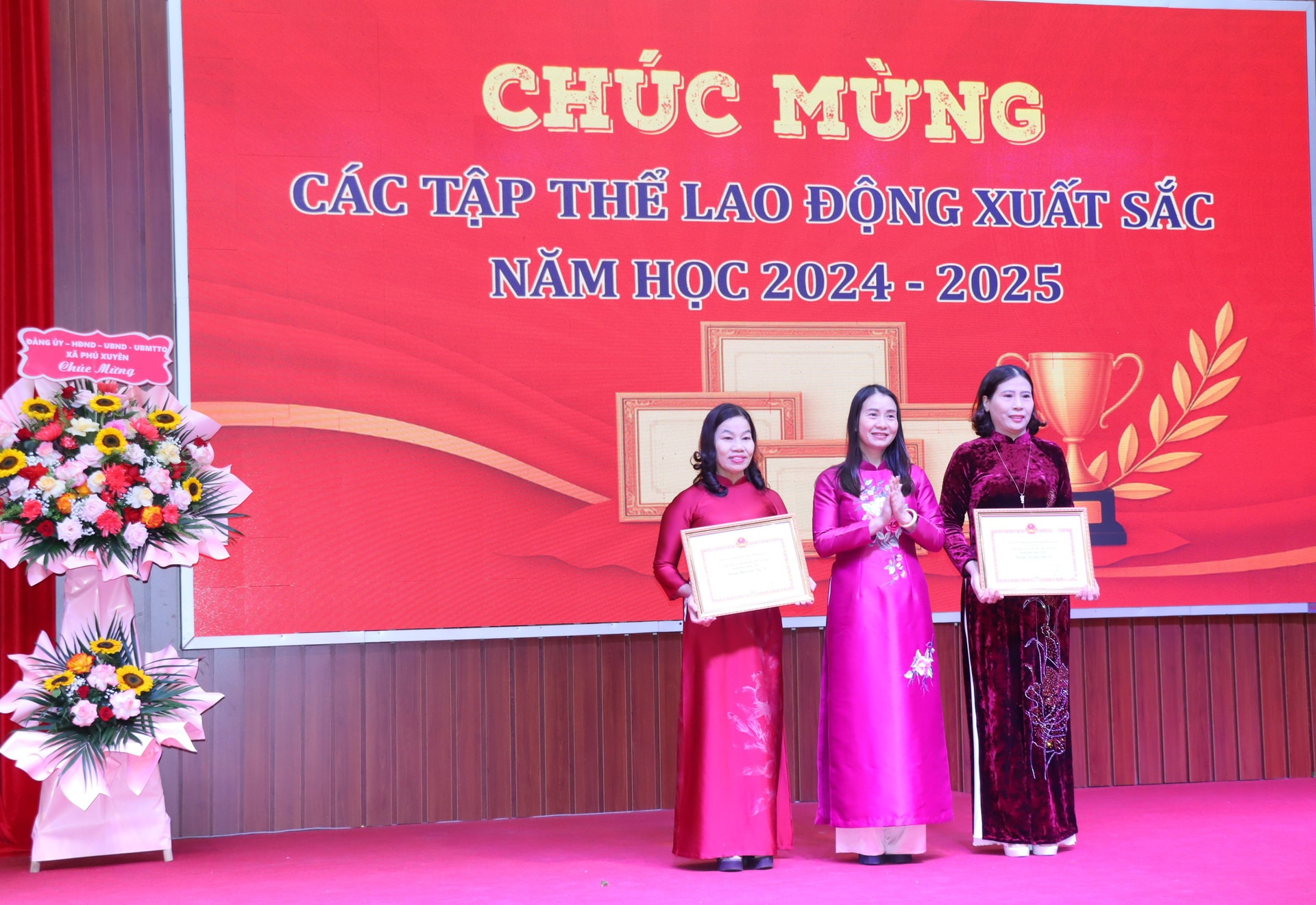 Phát biểu tại buổi lễ, Phó Bí thư Thường trực Đảng ủy xã Phú Xuyên Lê Thanh Hải biểu dương kết quả đáng tự hào của ngành Giáo dục xã trong năm học 2024-2025. Đồng chí nhấn mạnh: “Những thành quả hôm nay là nỗ lực bền bỉ của nhiều thế hệ thầy và trò. Tuy nhiên, trước yêu cầu đổi mới căn bản, toàn diện giáo dục - đào tạo, chúng ta càng phải quyết tâm cao hơn, hành động mạnh mẽ hơn”.