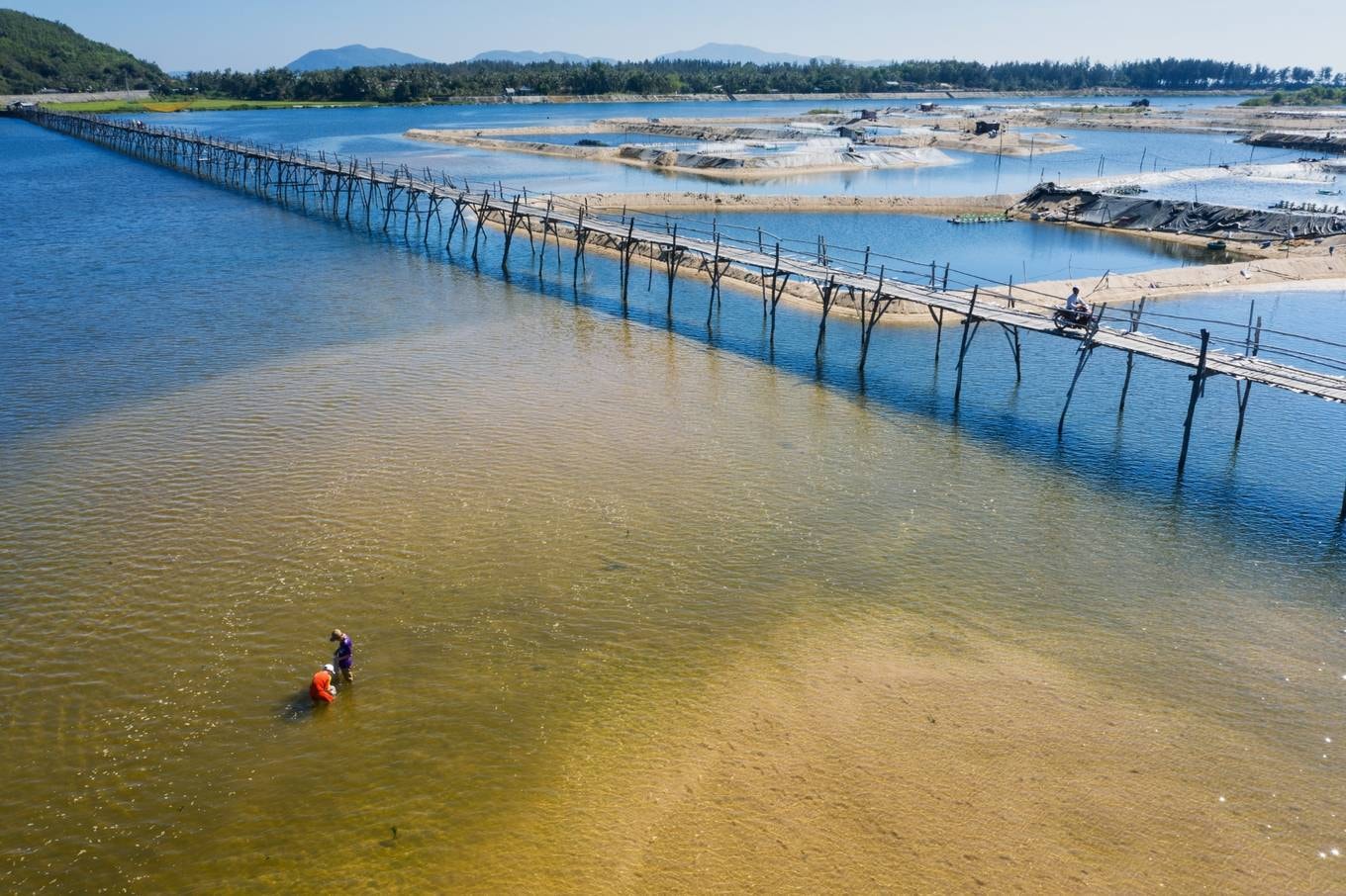 Với chiều dài gần 800m, đây là cây cầu gỗ dài nhất Việt Nam. Cầu bắc qua sông Bình Bá, mang vẻ đẹp mộc mạc và tĩnh lặng, đặc biệt cuốn hút vào thời điểm hoàng hôn buông xuống.