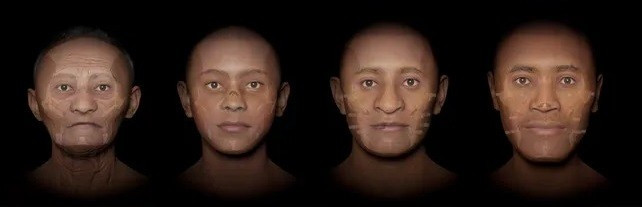 Bốn xác ướp hàng trăm tuổi được tìm thấy ở dãy Andes của Colombia mới được các chuyên gia phục dựng gương mặt mà không cần cởi bỏ "mặt nạ tử thần". Theo đó, họ tái tạo gương mặt của những người này khi còn sống bằng công nghệ kỹ thuật số. Ảnh: Facial depictions by Face Lab, Liverpool John Moores University.