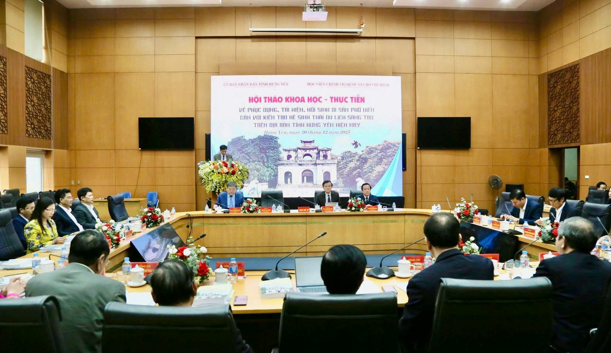 Hội thảo do UBND tỉnh Hưng Yên phối hợp với Học viện Chính trị quốc gia Hồ Chí Minh tổ chức tập trung làm rõ một định hướng xuyên suốt: phục dựng Phố Hiến không chỉ là trùng tu di tích, mà là tái hiện một không gian di sản tổng thể, có sức sống, gắn kết quá khứ với hiện tại và tương lai.
