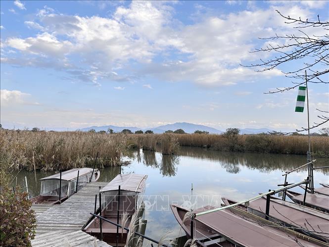 Cánh đồng lau trên hồ Nishinoko, một hồ nhỏ nối với hồ Biwa. Ảnh: Nguyễn Tuyến/Pv TTXVN tại Nhật Bản