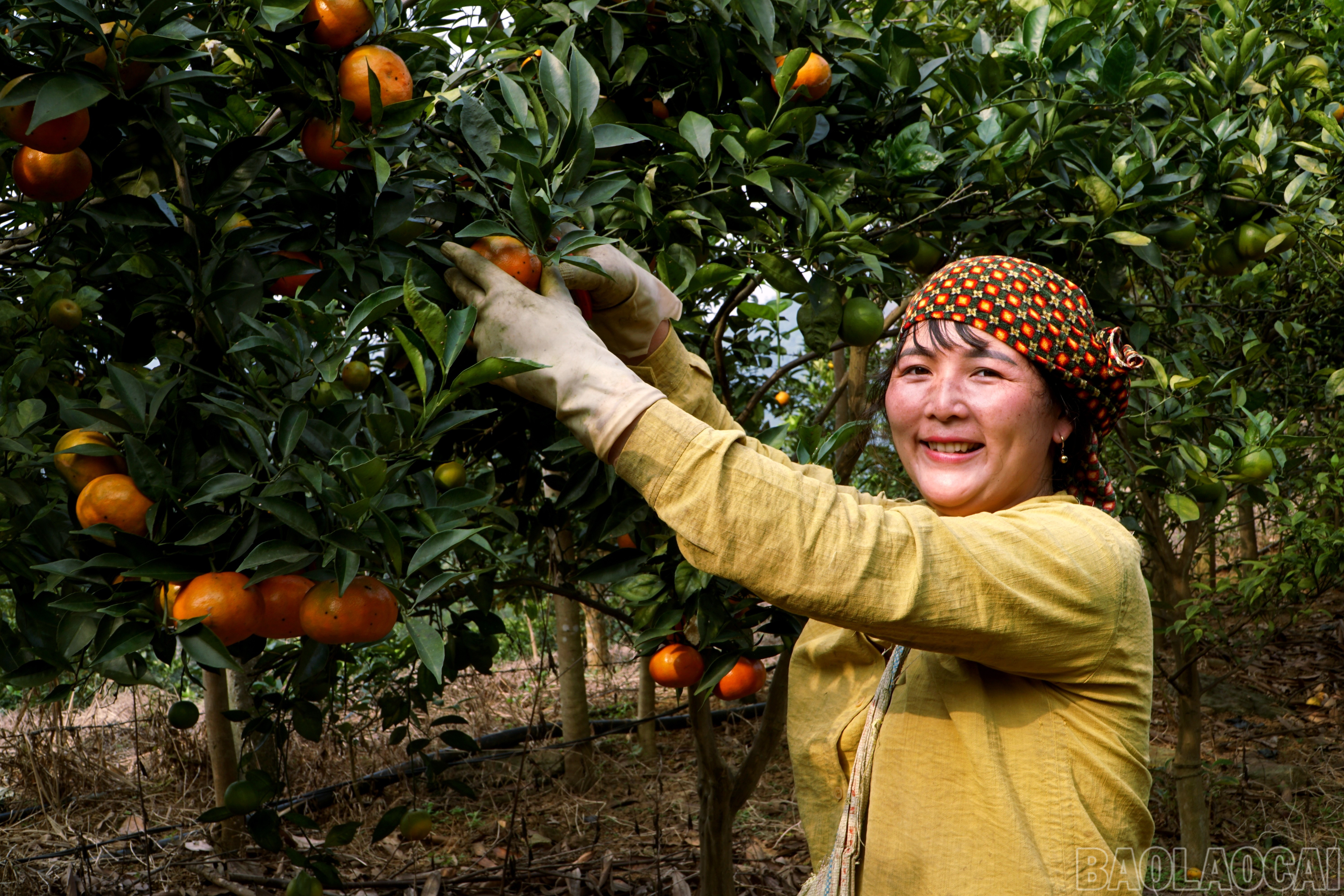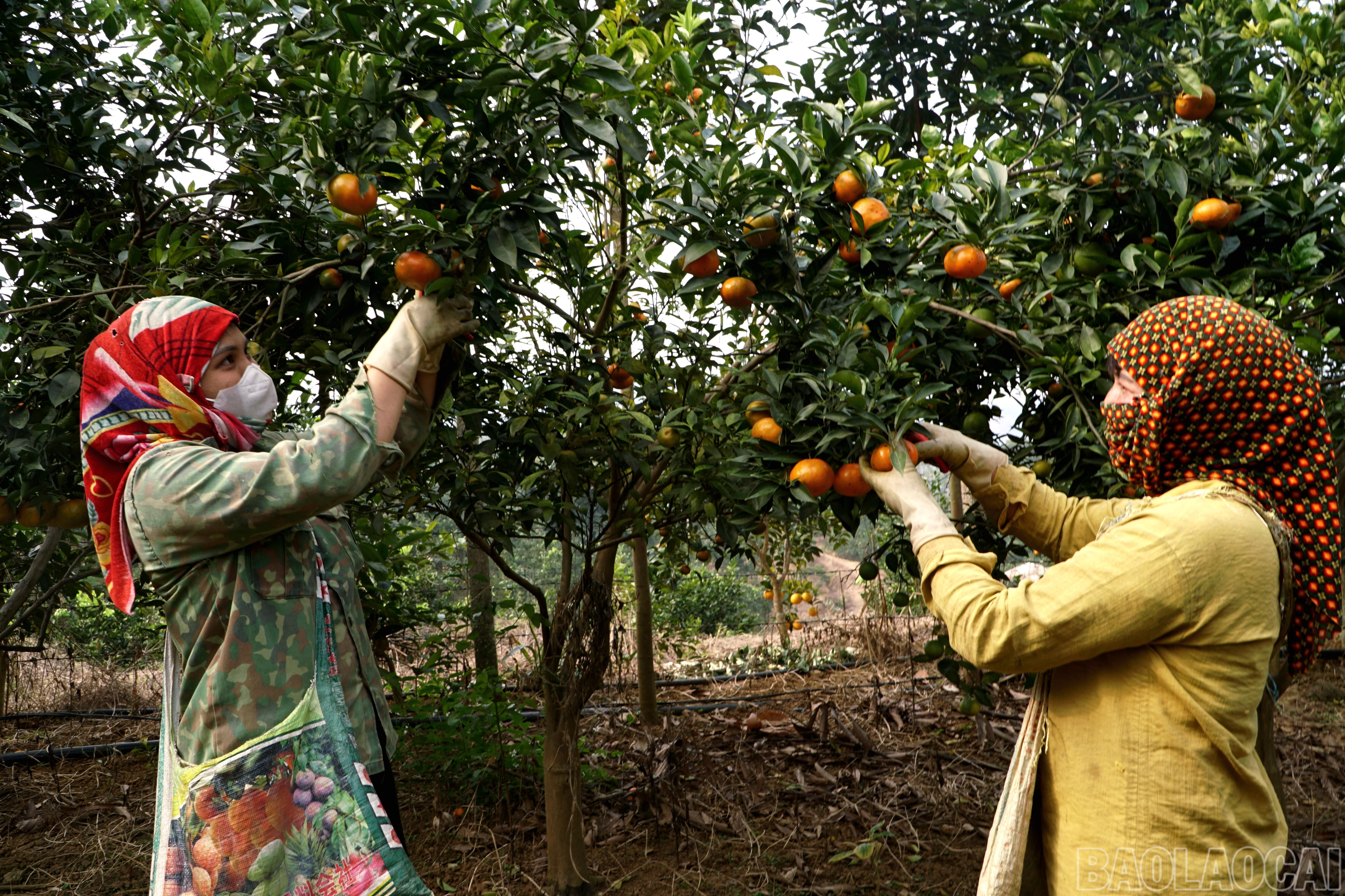 Mùa thu hoạch cam tạo thu nhập ổn định cho nhiều lao động địa phương nhất là lao động nữ người dân tộc thiểu số. Mỗi ngày hái cam, họ được trả công 300.000 đồng - 350.000 đồng.