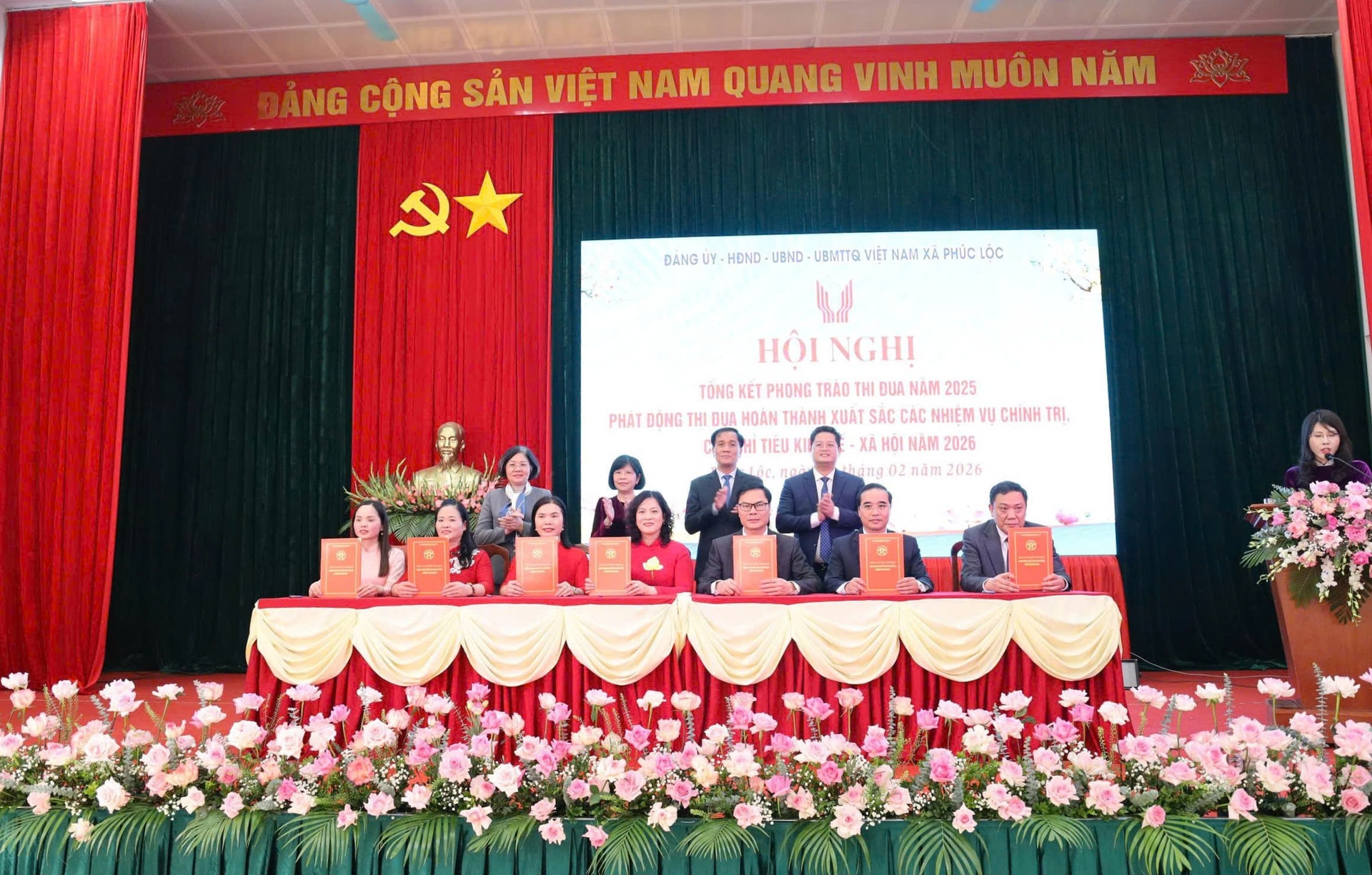 Các cơ quan, đơn vị xã Phúc Lộc ký giao ước thi đua hoàn thành xuất sắc nhiệm vụ năm 2026. Ảnh: Nguyễn Mai