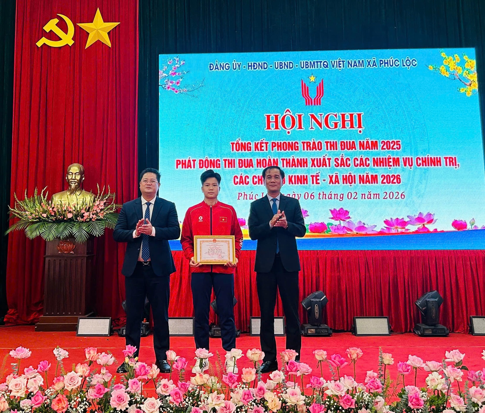 Lãnh đạo xã Phúc Lộc khen thưởng cá nhân có thành tích xuất sắc trong Phong trào thi đua năm 2025. Ảnh: Nguyễn Mai