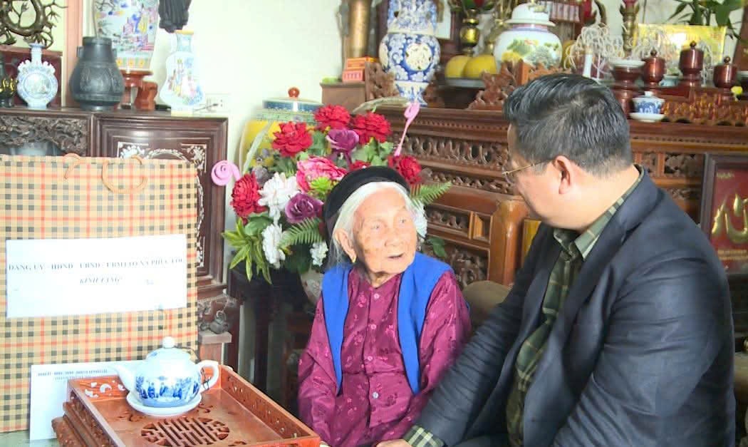 Đối với cụ Nguyễn Thị Trình - người cao tuổi tròn 100 tuổi, đồng chí Chủ tịch UBND xã gửi lời chúc sức khỏe, trường thọ, mong cụ tiếp tục là điểm tựa tinh thần, là niềm tự hào của gia đình và địa phương.