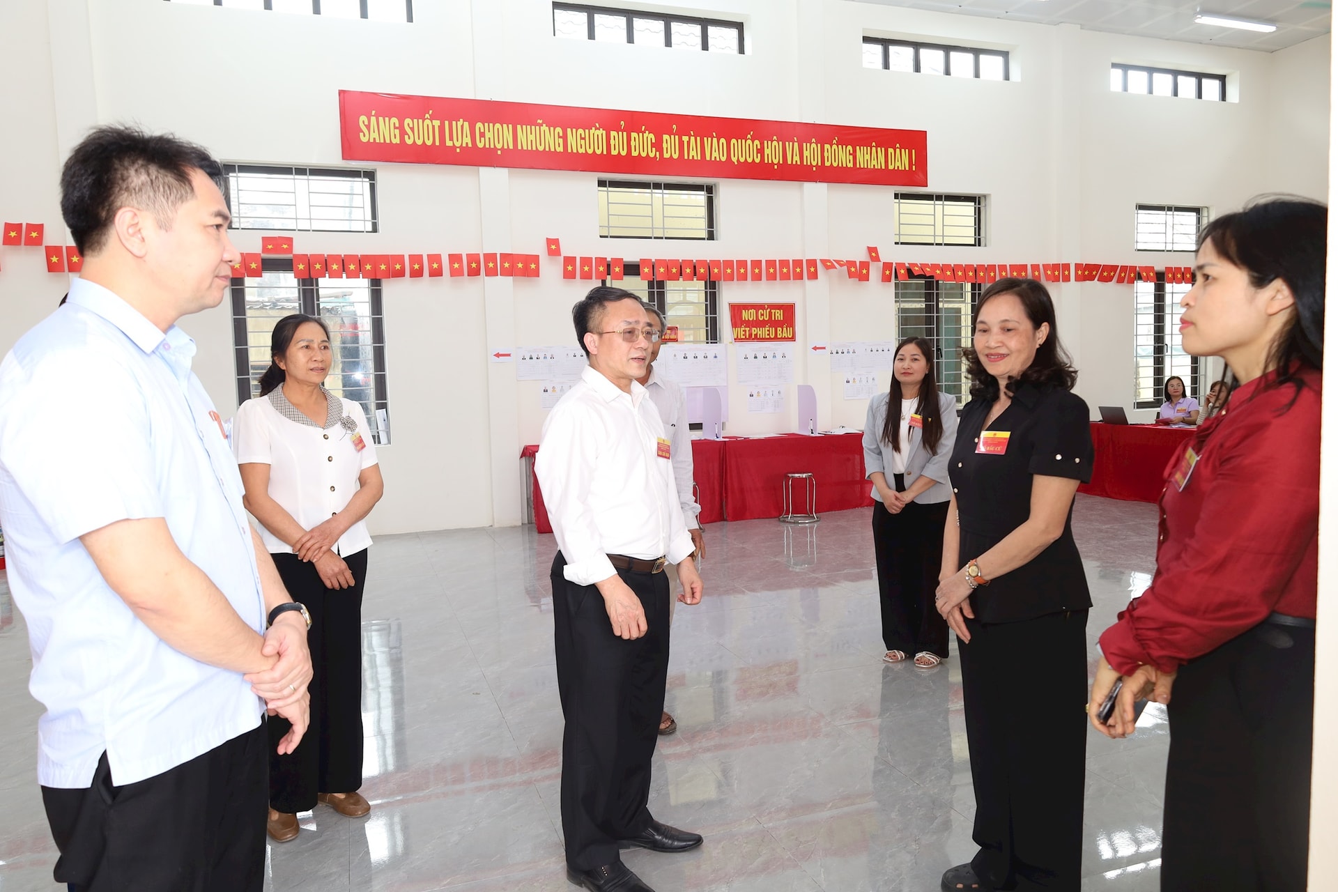 Ghi nhận tại Nhà văn hóa thôn Cát cho thấy, khi ngày bầu cử bước vào những giờ cuối, các tổ bầu cử vẫn duy trì nghiêm túc chế độ làm việc, hoàn thiện các phần việc theo quy định. Không khí tại khu vực bỏ phiếu trật tự, nền nếp; lực lượng làm nhiệm vụ tiếp tục bám vị trí, bảo đảm an toàn cho hòm phiếu, tài liệu bầu cử và các khâu liên quan.