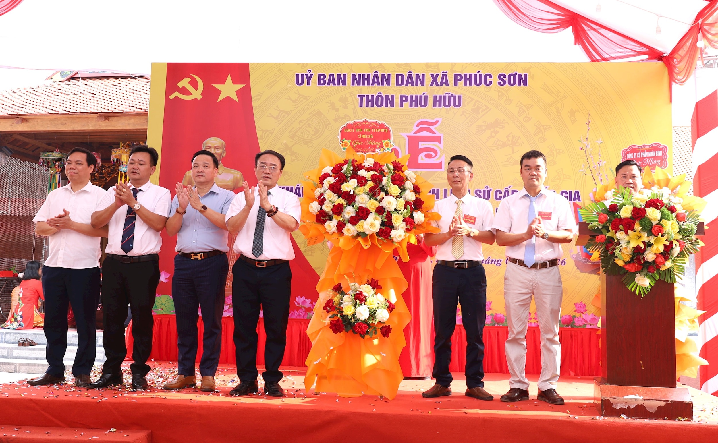 Lãnh đạo Đảng ủy, HĐND, UBND, Ủy ban MTTQ Việt Nam xã Phúc Sơn chúc mừng hội làng thôn Phú Hữu. Ảnh: Kim Nhuệ