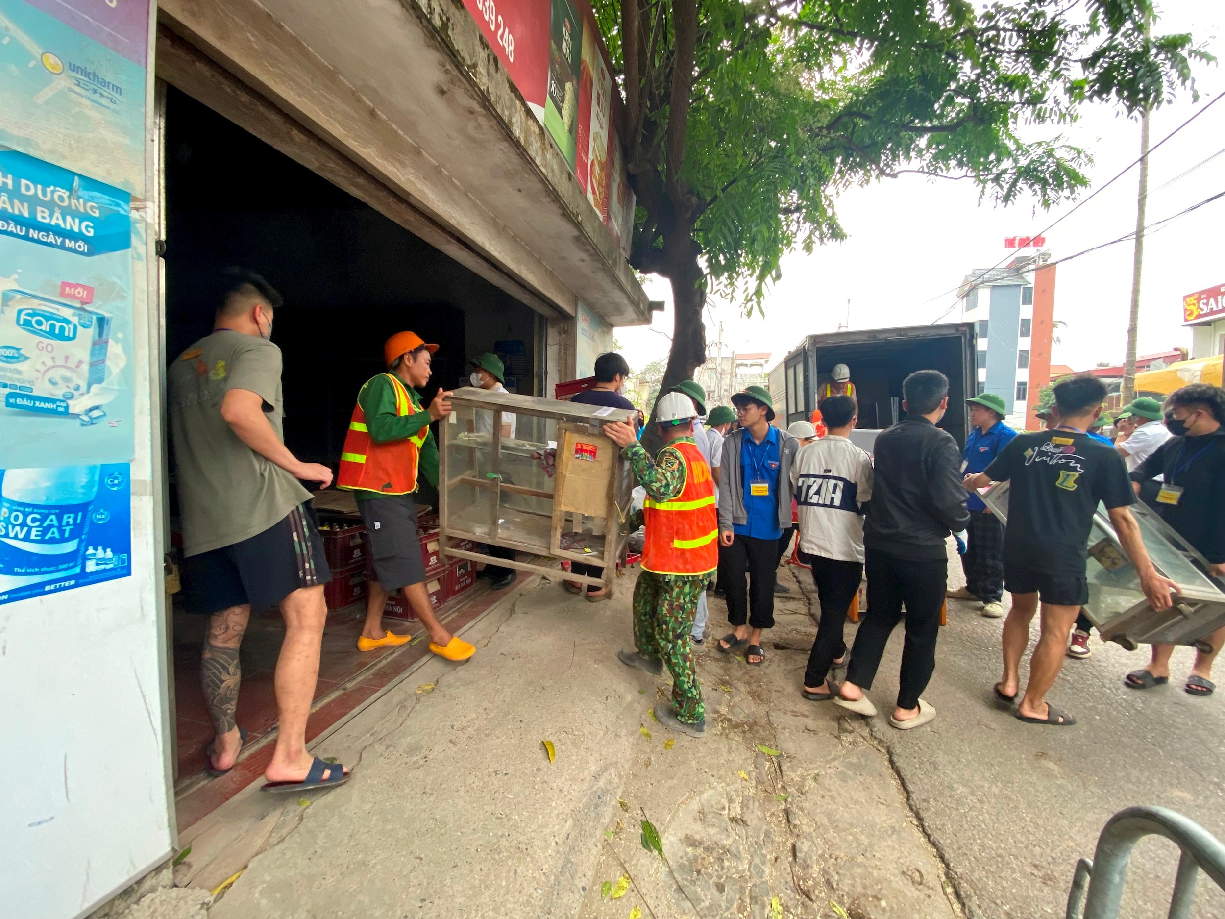 Lực lượng chức năng di chuyển tài sản của người dân ra khỏi khu vực cưỡng chế. Ảnh: Thanh Hà