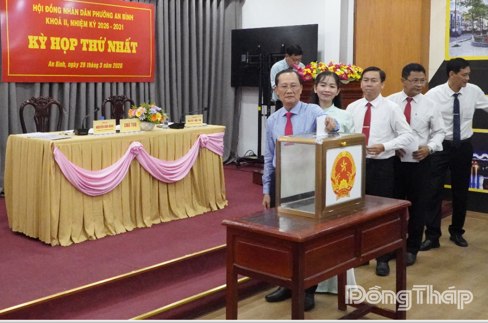 Kỳ họp HĐND phường An Bình lần này tiến hành bầu các chức danh chủ chốt của HĐND và UBND phường nhiệm kỳ 2026 - 2031. Kết quả, đồng chí Nguyễn Văn Khơi, Bí thư Đảng ủy, Chủ tịch HĐND phường nhiệm kỳ 2021 - 2026 được bầu giữ chức Chủ tịch HĐND phường nhiệm kỳ 2026 - 2031; đồng chí Huỳnh Văn Tài, Chủ tịch UBND phường nhiệm kỳ 2021 - 2026 được bầu giữ chức Chủ tịch UBND phường nhiệm kỳ 2026 - 2031.