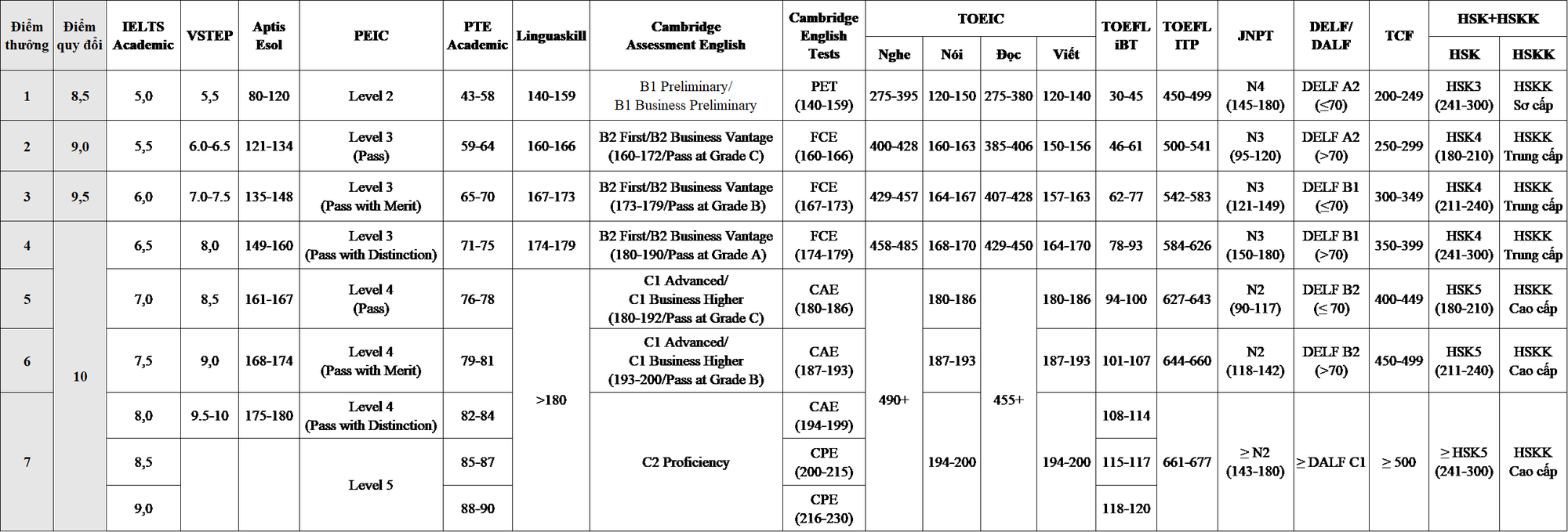 Quy định về các chứng chỉ tiếng Anh tương đương
