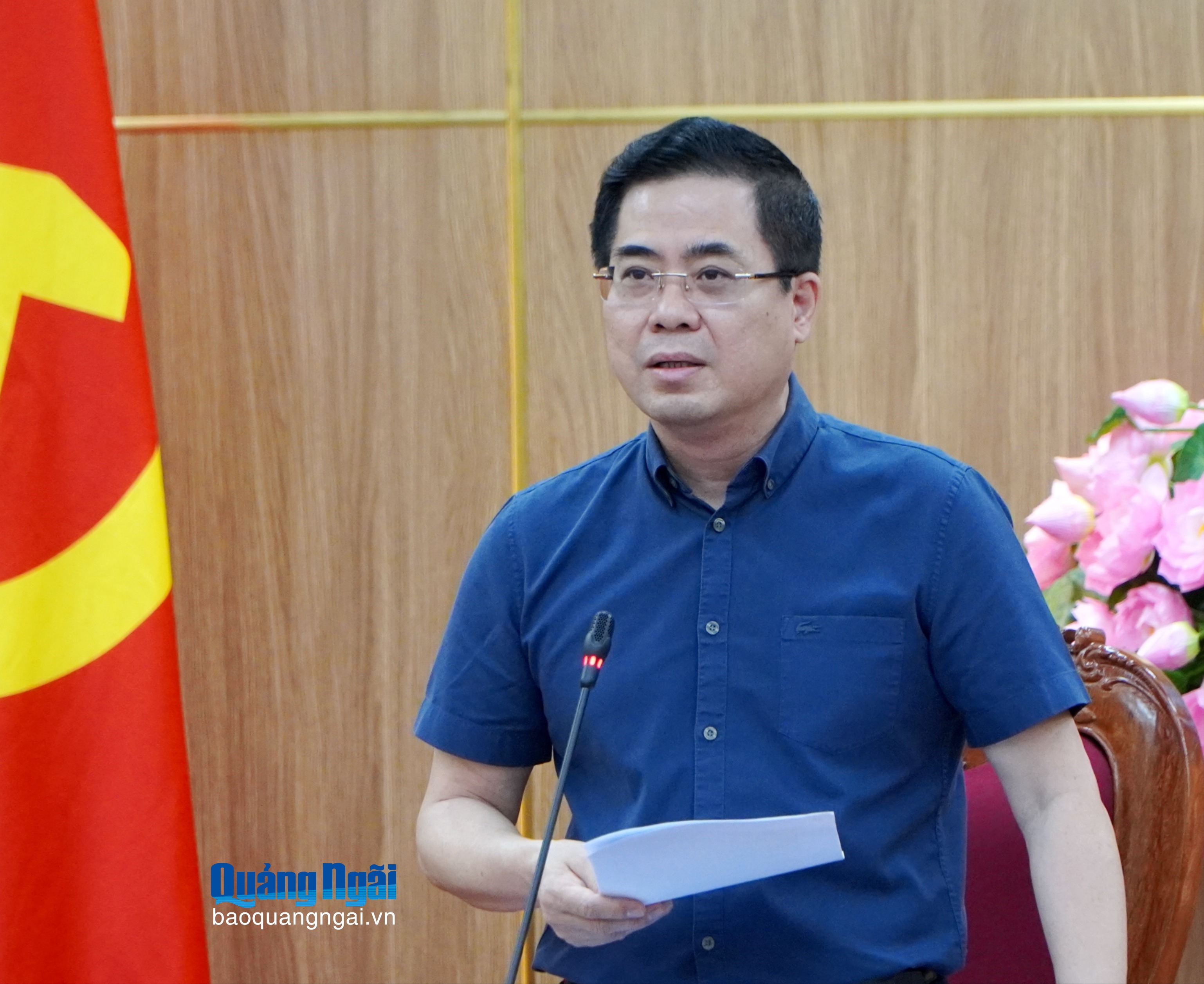 Phó Bí thư Tỉnh ủy, Chủ tịch UBND tỉnh Nguyễn Hoàng Giang báo cáo tại cuộc họp.