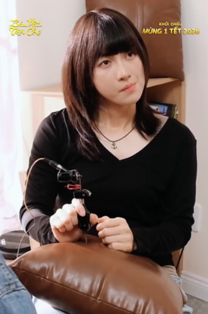 Hình ảnh nữ diễn viên xuất hiện với tạo hình cô thợ xăm, phong thái trầm lặng và ánh nhìn sắc lạnh được chia sẻ rộng rãi, cho thấy sự khác biệt rõ nét so với hình tượng "nàng thơ" quen thuộc mà khán giả từng biết đến.