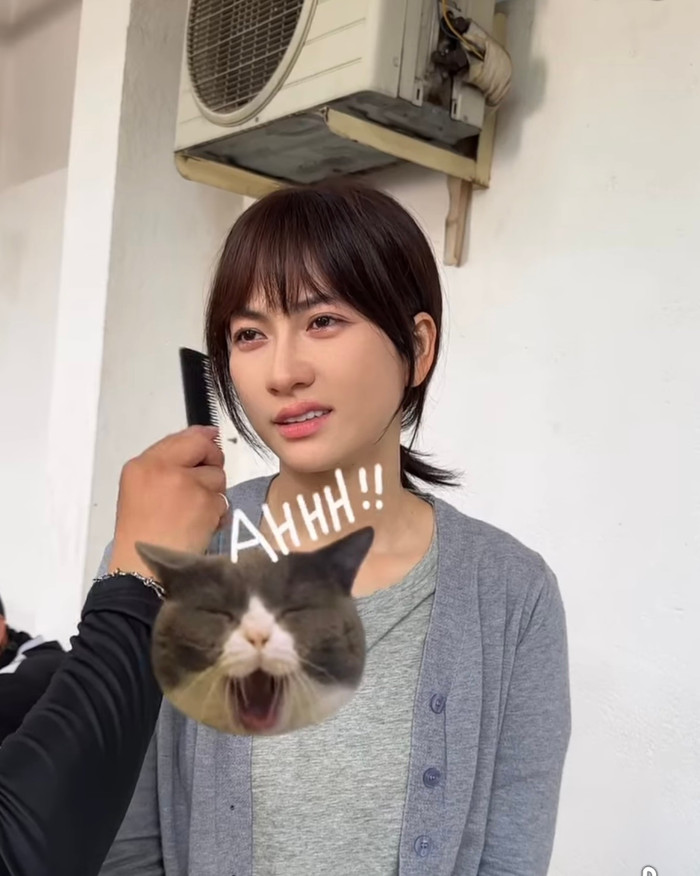Vẻ mặt cam chịu của Phương Anh Đào khi biết cảnh quay đầu tiên của mình - Ảnh: Chụp màn hình