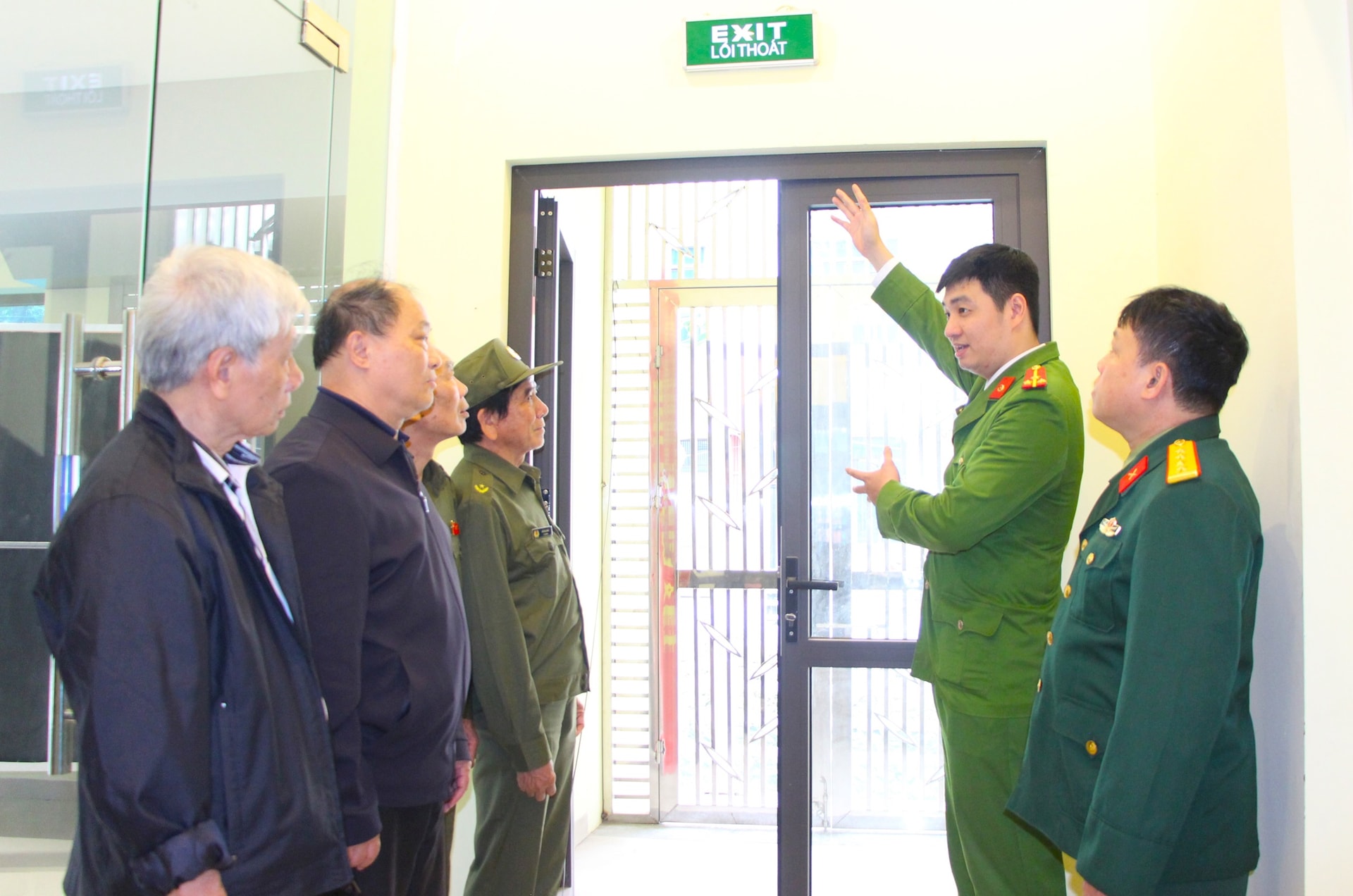 Công tác hướng dẫn thoát hiểm khi có sự cố xảy ra cũng được cán bộ Đội chữa cháy và cứu nạn, cứu hộ khu vực số 8 quan tâm, hướng dẫn tổ bầu cử. Ảnh: MH