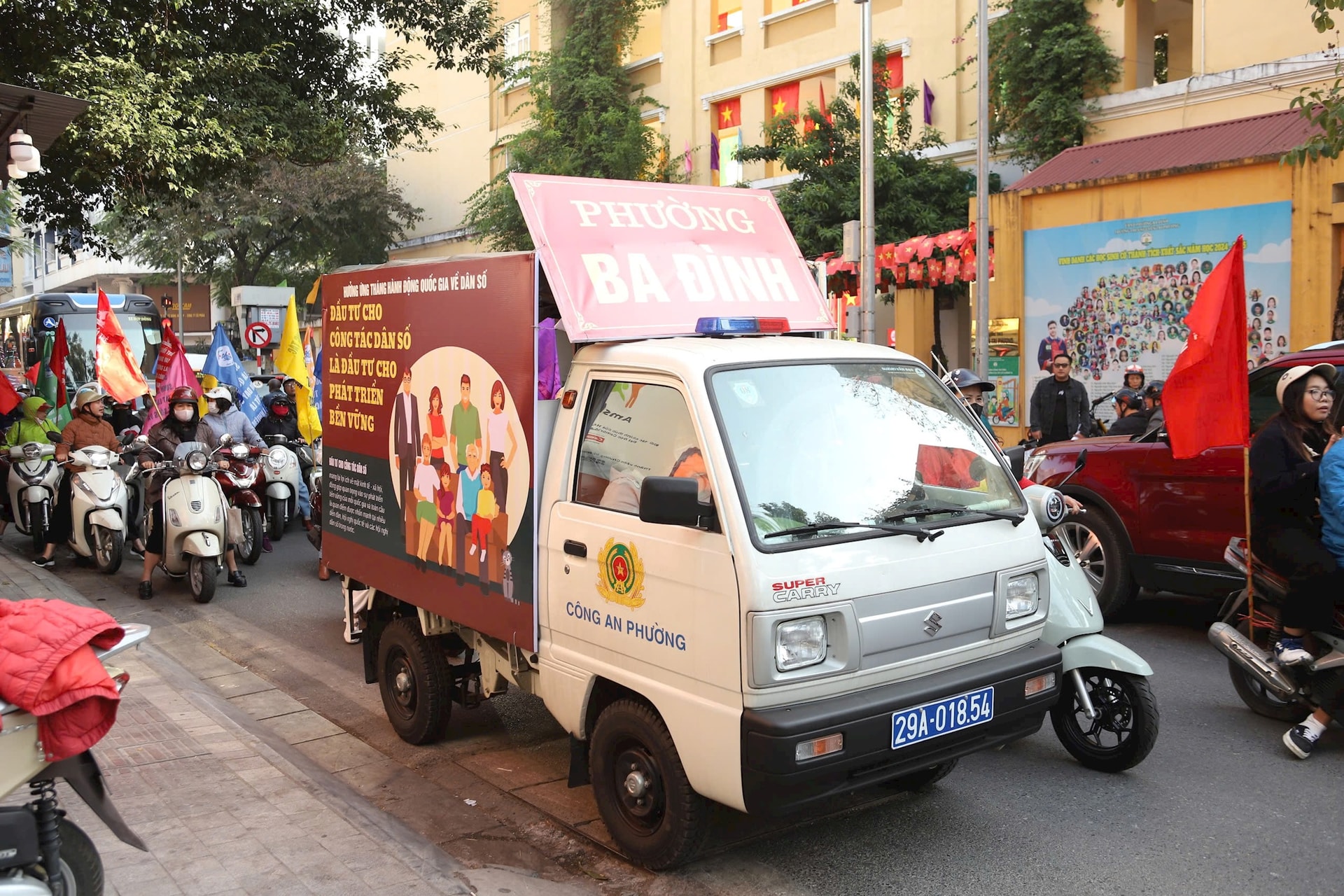 Phường Ba Đình tổ chức tuyên truyền lưu động ngay sau buổi lễ. Ảnh: TT