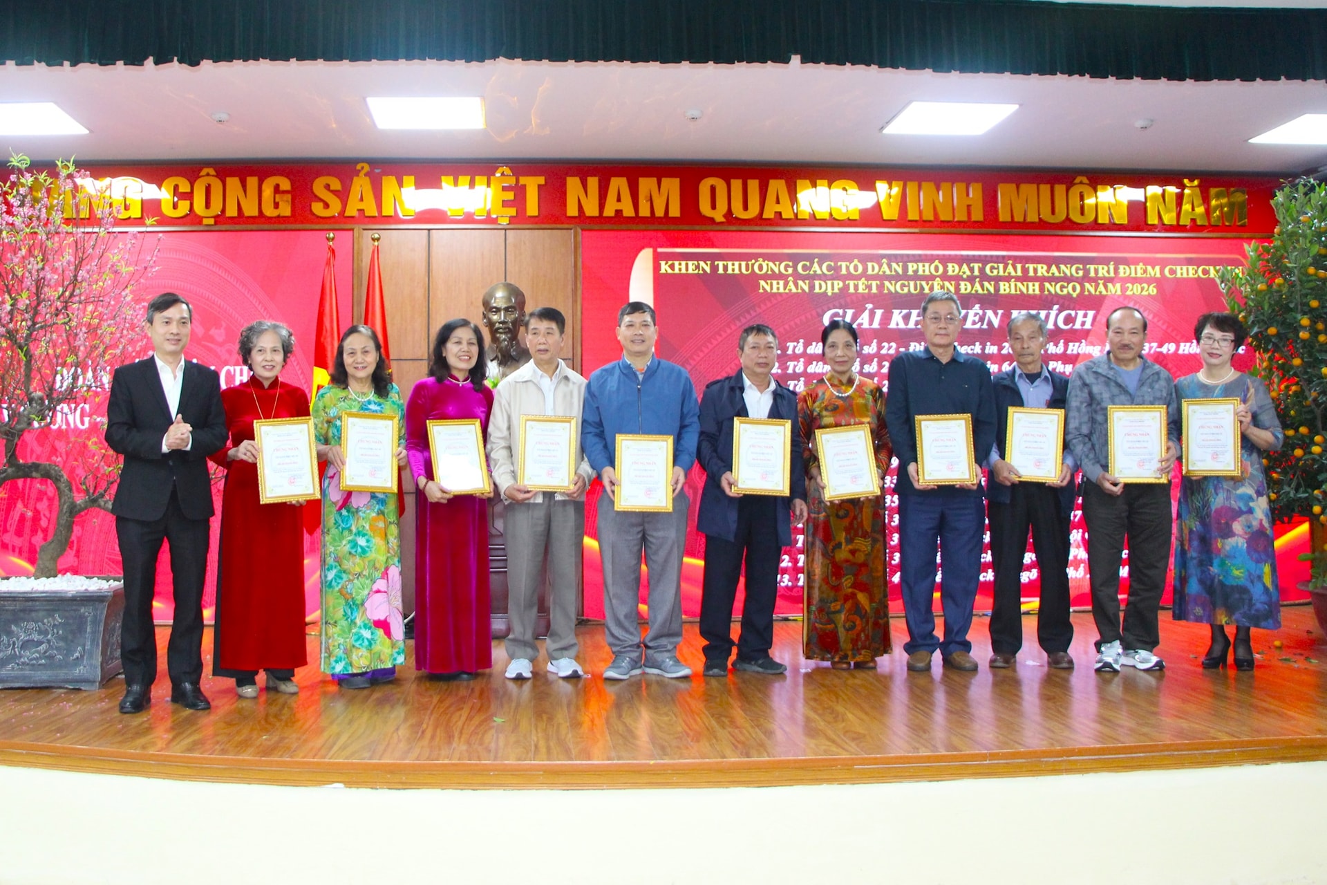 Tại hội nghị, phường Ba Đình đã tổ chức khen thưởng các tập thể, cá nhân có thành tích xuất sắc trong công tác phục vụ Tết Nguyên đán Bính Ngọ 2026 và trao giải cuộc thi trang trí các điểm “check-in” Tết ở các tổ dân phố trên địa bàn phường Ba Đình.