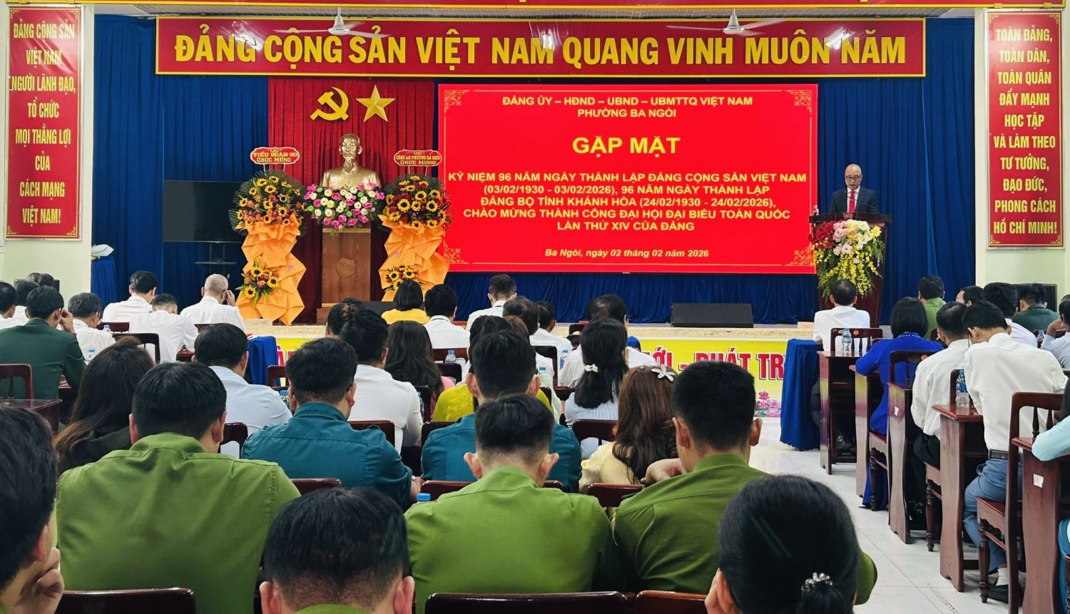 Ngày 2-2, Đảng ủy phường Ba Ngòi tổ chức gặp mặt kỷ niệm 96 năm Ngày thành lập Đảng Cộng sản Việt Nam (3-2-1930 - 3-2-2026), 96 năm Ngày thành lập Đảng bộ tỉnh Khánh Hòa (24-2-1930 - 24-2-2026), chào mừng thành công Đại hội đại biểu toàn quốc lần thứ XIV của Đảng, mừng xuân Bính Ngọ 2026 và trao Huy hiệu Đảng đợt 3-2 cho đảng viên.