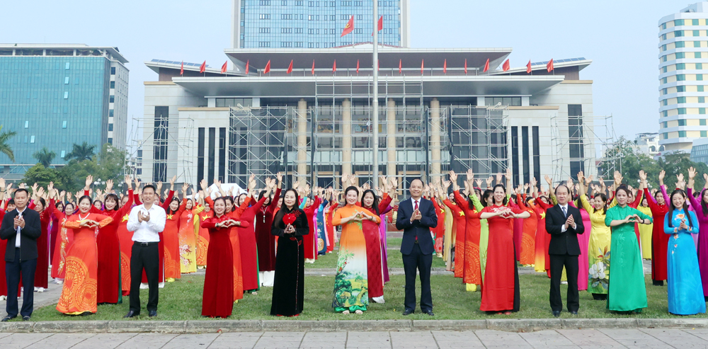 Tại chương trình, các hội viên phụ nữ đã đồng diễn các tiết mục dân vũ trên nền nhạc các ca khúc: “Đất nước trọn niềm vui”, “Mùa xuân trên Thành phố Hồ Chí Minh” và “Vũ điệu kết đoàn” nhằm ca ngợi Đảng quang vinh, Bác Hồ vĩ đại, tình yêu quê hương đất nước, thể hiện niềm tin, khát vọng, ý chí vươn lên. Trong trang phục áo dài rực rỡ, các động tác uyển chuyển, đồng đều tôn lên vẻ duyên dáng, khỏe khoắn và tinh thần đoàn kết của phụ nữ trong thời kỳ mới.
