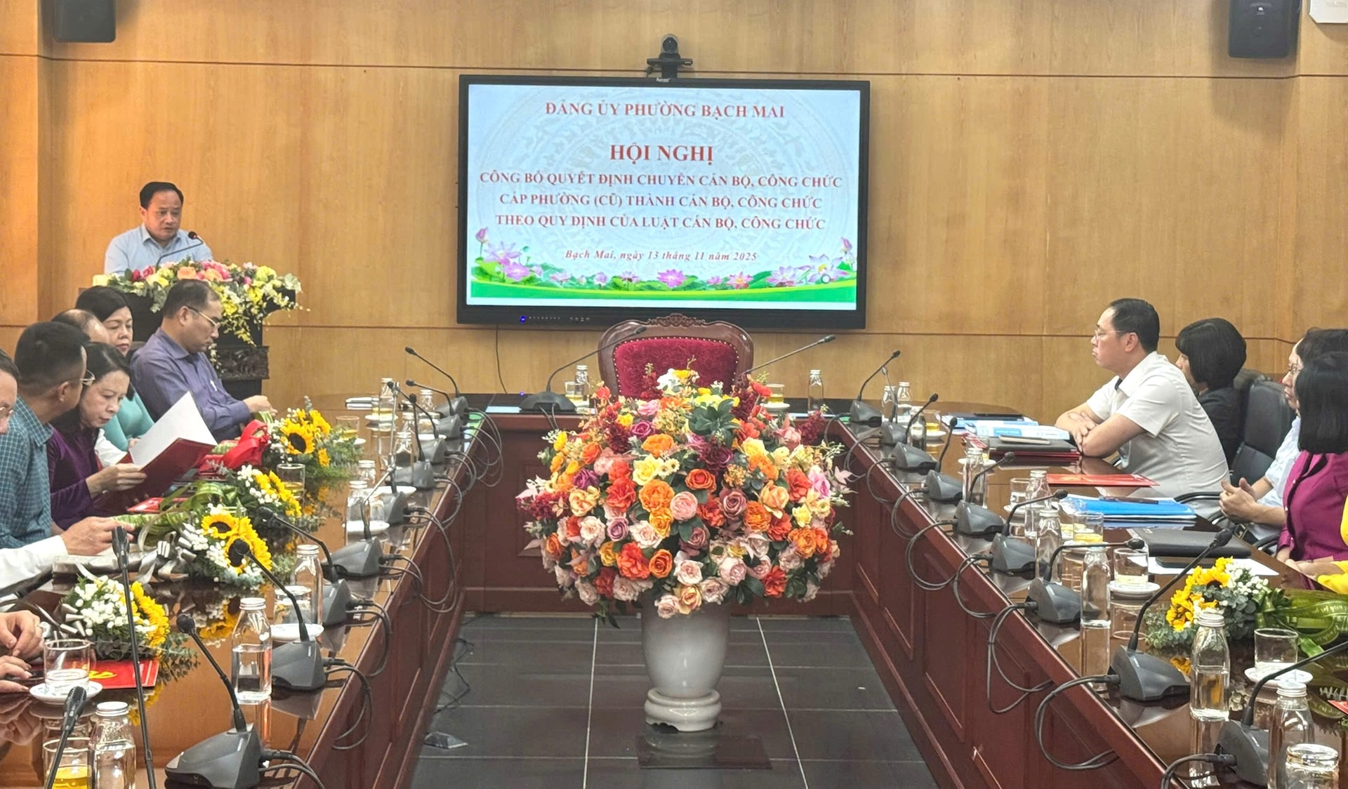 Tại hội nghị, đồng chí Nguyễn Tiến Toàn, Phó Trưởng Ban Xây dựng Đảng Đảng ủy phường Bạch Mai đã công bố Quyết định số 22-QĐ/BTCTU ngày 1-11-2025 của Ban Tổ chức Thành ủy Hà Nội về việc chuyển 13 cán bộ, công chức cấp xã (cũ) thành cán bộ, công chức công tác tại Đảng ủy phường Bạch Mai theo quy định của Luật Cán bộ, công chức.