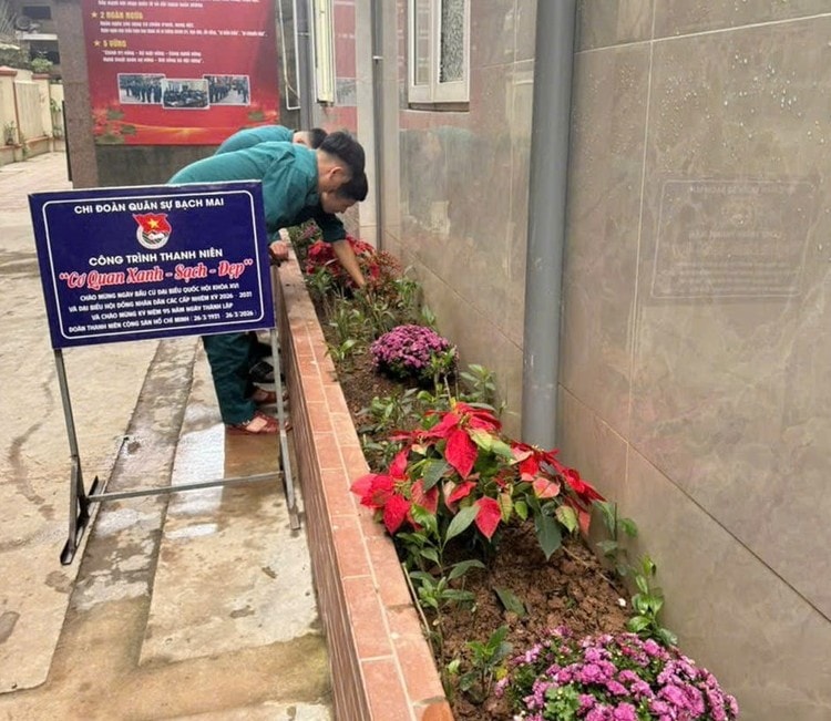 Công trình thanh niên “Tử tế vì môi trường” tại các cơ sở Đoàn Thanh niên phường Bạch Mai. Ảnh: PV