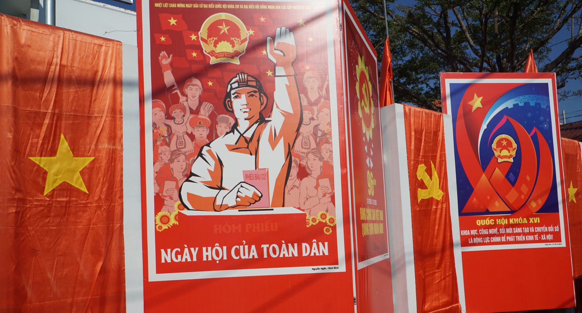 Tại trụ sở các cơ quan, đơn vị và khu dân cư, nhiều khẩu hiệu tuyên truyền về ý nghĩa và tầm quan trọng của cuộc bầu cử được treo trang trọng.