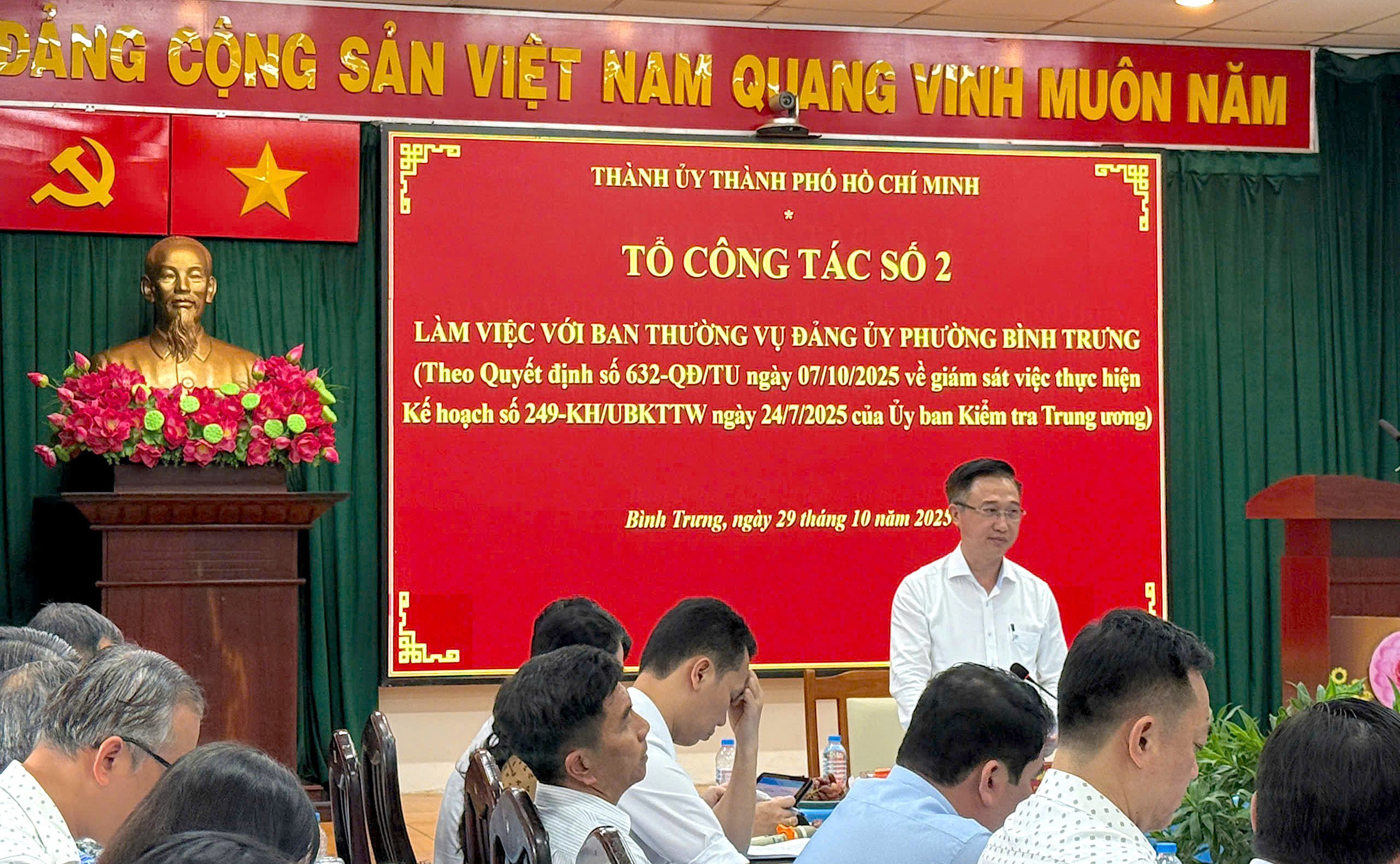 Ngày 29-10, Tổ công tác số 2 của Thành ủy do đồng chí Đặng Minh Thông, Phó Bí thư Thành ủy TPHCM làm trưởng đoàn, đến làm việc với Ban Thường vụ Đảng ủy phường Bình Trưng về giám sát kết quả thực hiện Kế hoạch 249-KH/UBKTTW của Ủy ban Kiểm tra Trung ương trên địa bàn phường.