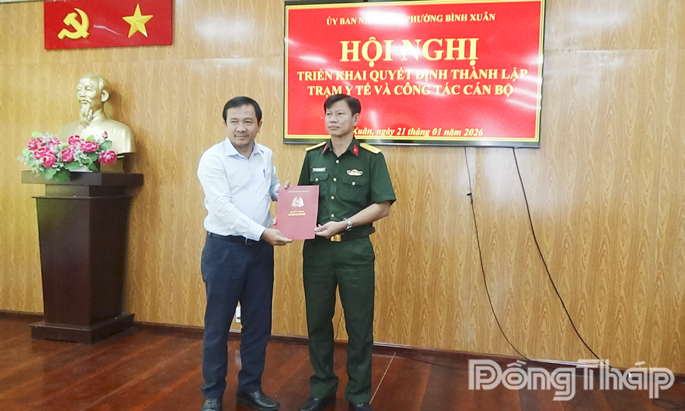 Tại hội nghị, đồng chí Nguyễn Thanh Tùng, Trưởng phòng Văn hóa - Xã hội phường Bình Xuân triển khai các quyết định thành lập Trạm Y tế phường; quyết định bổ nhiệm các chức danh Giám đốc, Phó Giám đốc Trạm Y tế phường; quyết định phân công nhiệm vụ cán bộ, công chức, viên chức Trạm Y tế phường và quyết định của Bộ Chỉ huy Quân sự tỉnh Đồng Tháp, Quân khu 9 về công tác cán bộ.