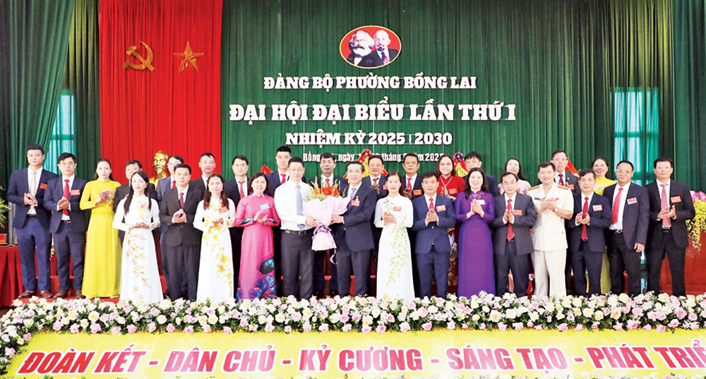 Các đồng chí lãnh đạo tỉnh chúc mừng Ban Chấp hành Đảng bộ phường Bồng Lai, nhiệm kỳ 2025- 2030.
