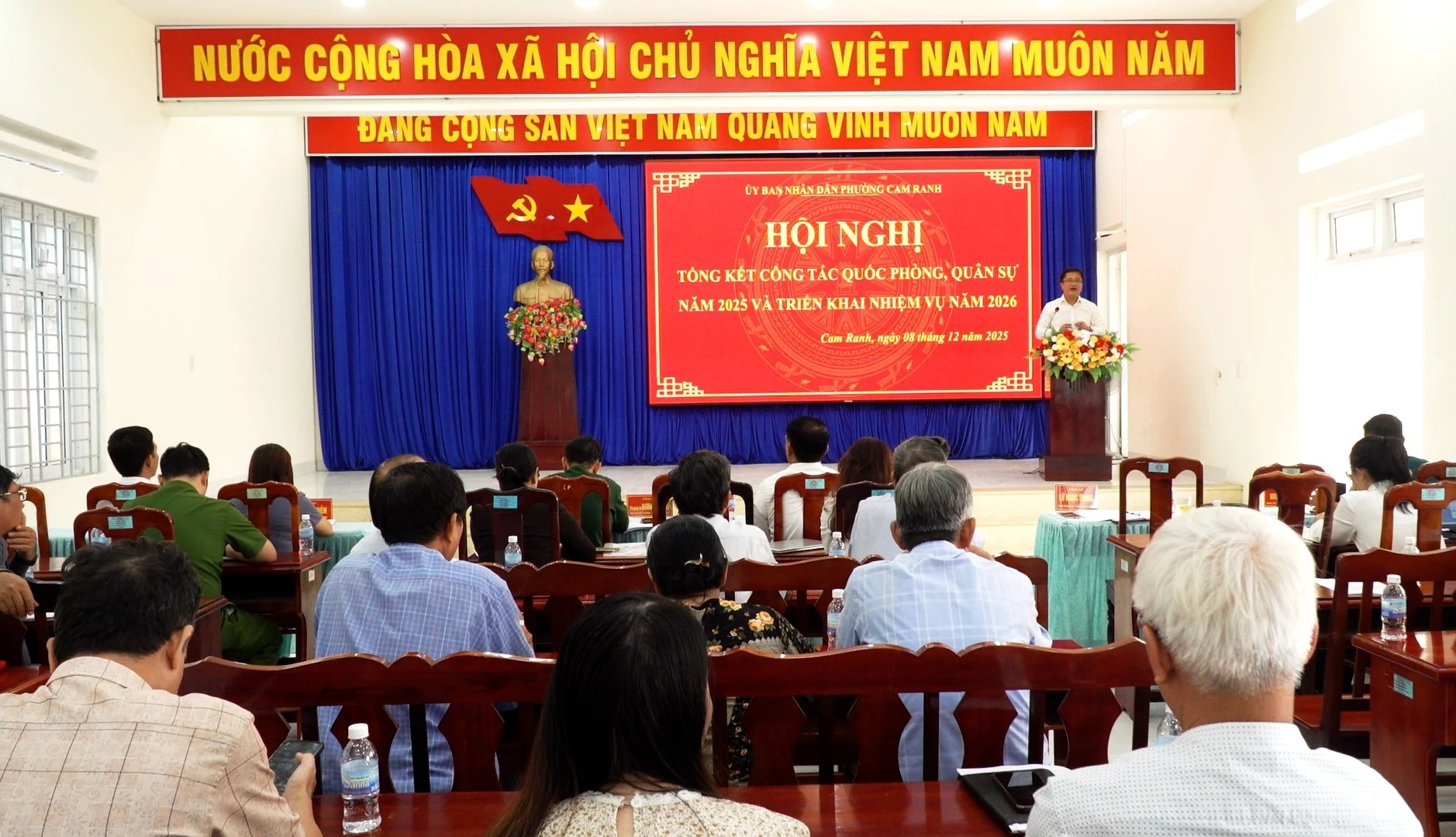 Chiều 8-12, UBND phường Cam Ranh tổ chức hội nghị tổng kết nhiệm vụ quốc phòng, quân sự địa phương năm 2025; triển khai phương hướng năm 2026.