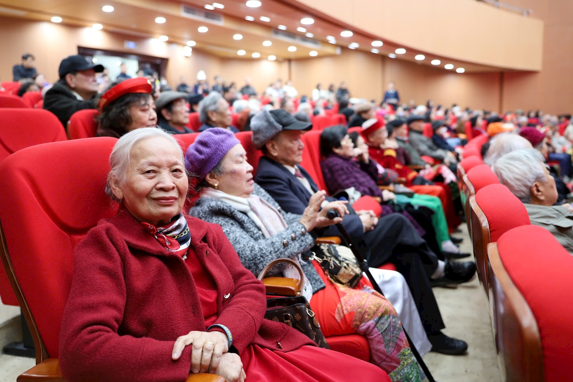Các cụ cao niên phấn khởi dự lễ mừng thọ. Ảnh: PV