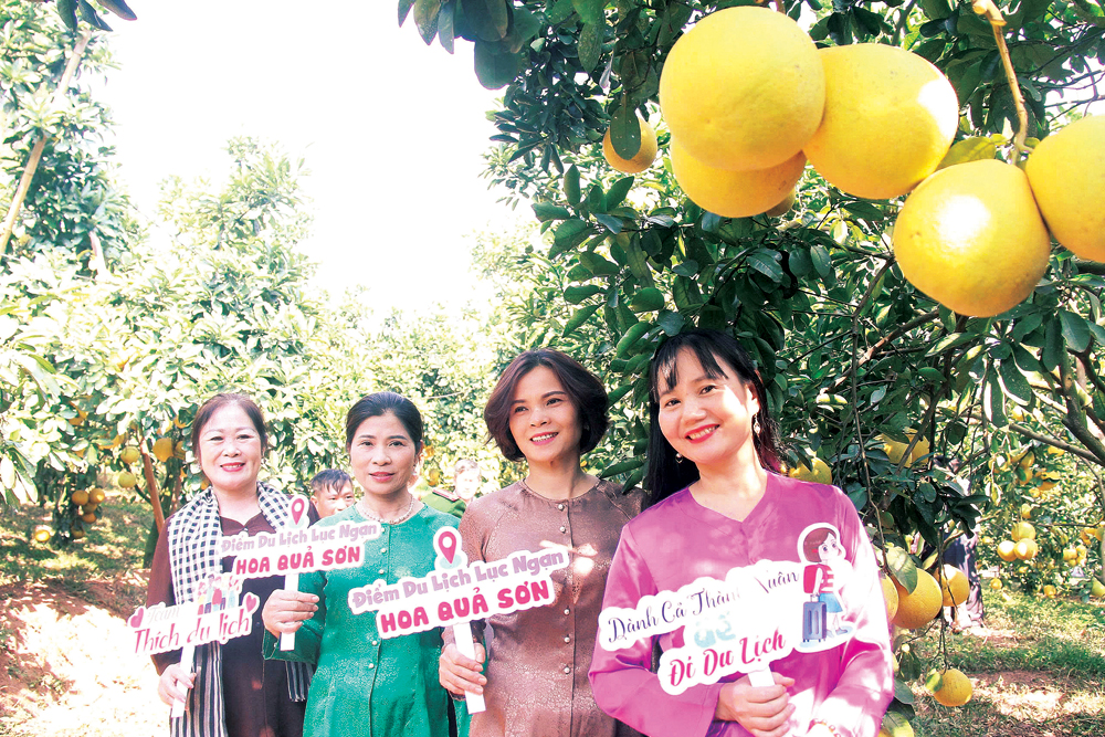 Khách du lịch thăm điểm du lịch sinh thái Hoa Quả Sơn.