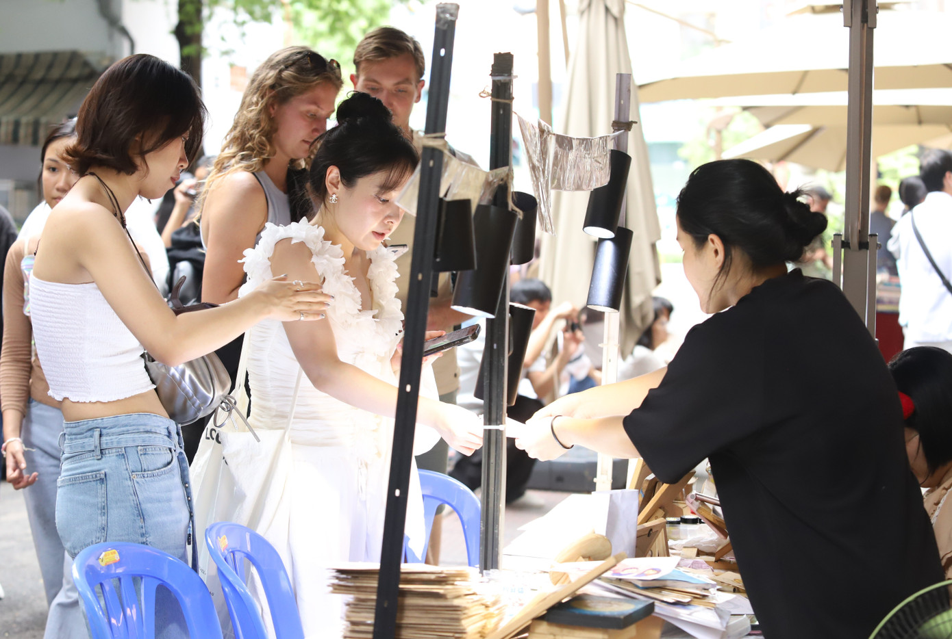 Du khách tham quan, mua sắm tại một địa điểm nổi tiếng trên địa bàn phường Sài Gòn. Ảnh: Ngô Tùng