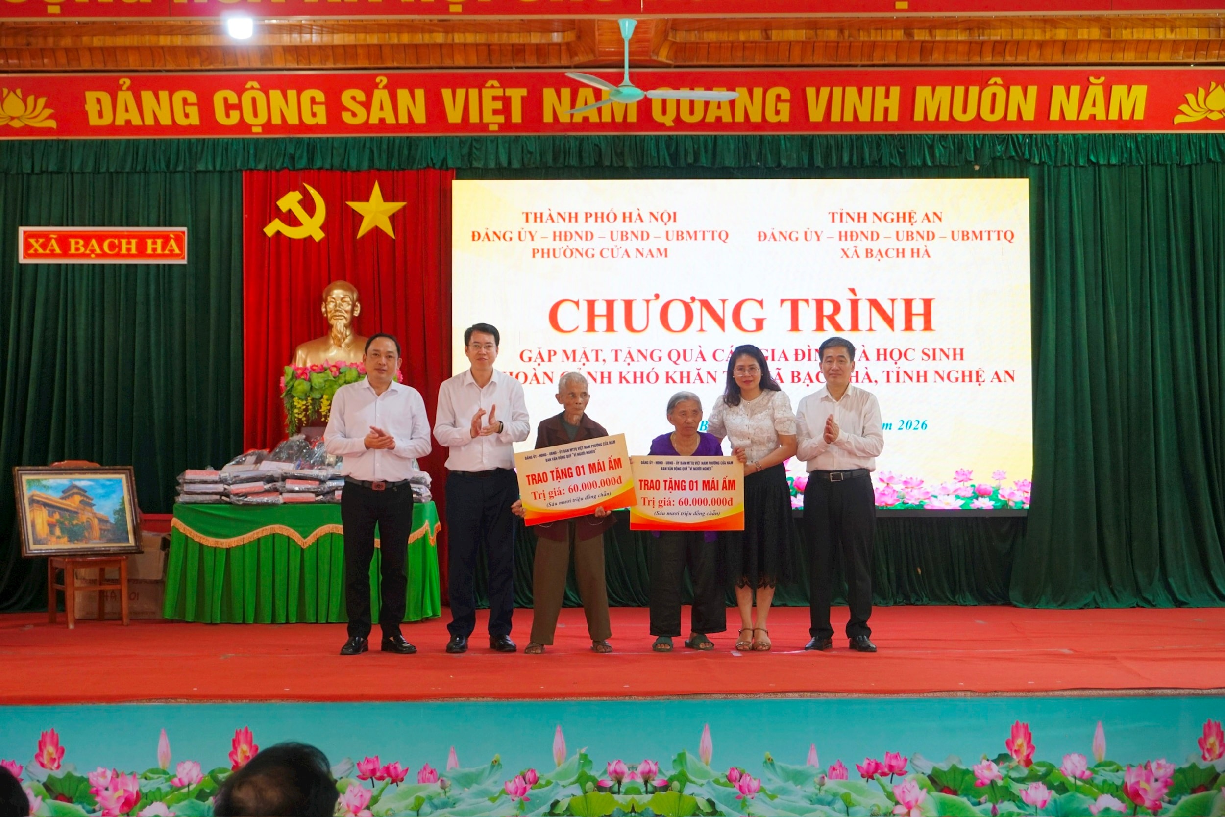 Cũng trong chuyến đi, nhằm lan tỏa truyền thống “tương thân tương ái”, phát huy hiệu quả công tác “dân vận khéo” gắn với chăm lo an sinh xã hội, chiều cùng ngày, phường Cửa Nam đã hỗ trợ kinh phí sửa chữa nhà cho 2 hộ gia đình khó khăn tại xã Bạch Hà, tỉnh Nghệ An (mỗi hộ 60 triệu đồng); trao tặng quà cho 50 học sinh có hoàn cảnh khó khăn vươn lên trong học tập, tổng giá trị hơn 195 triệu đồng.